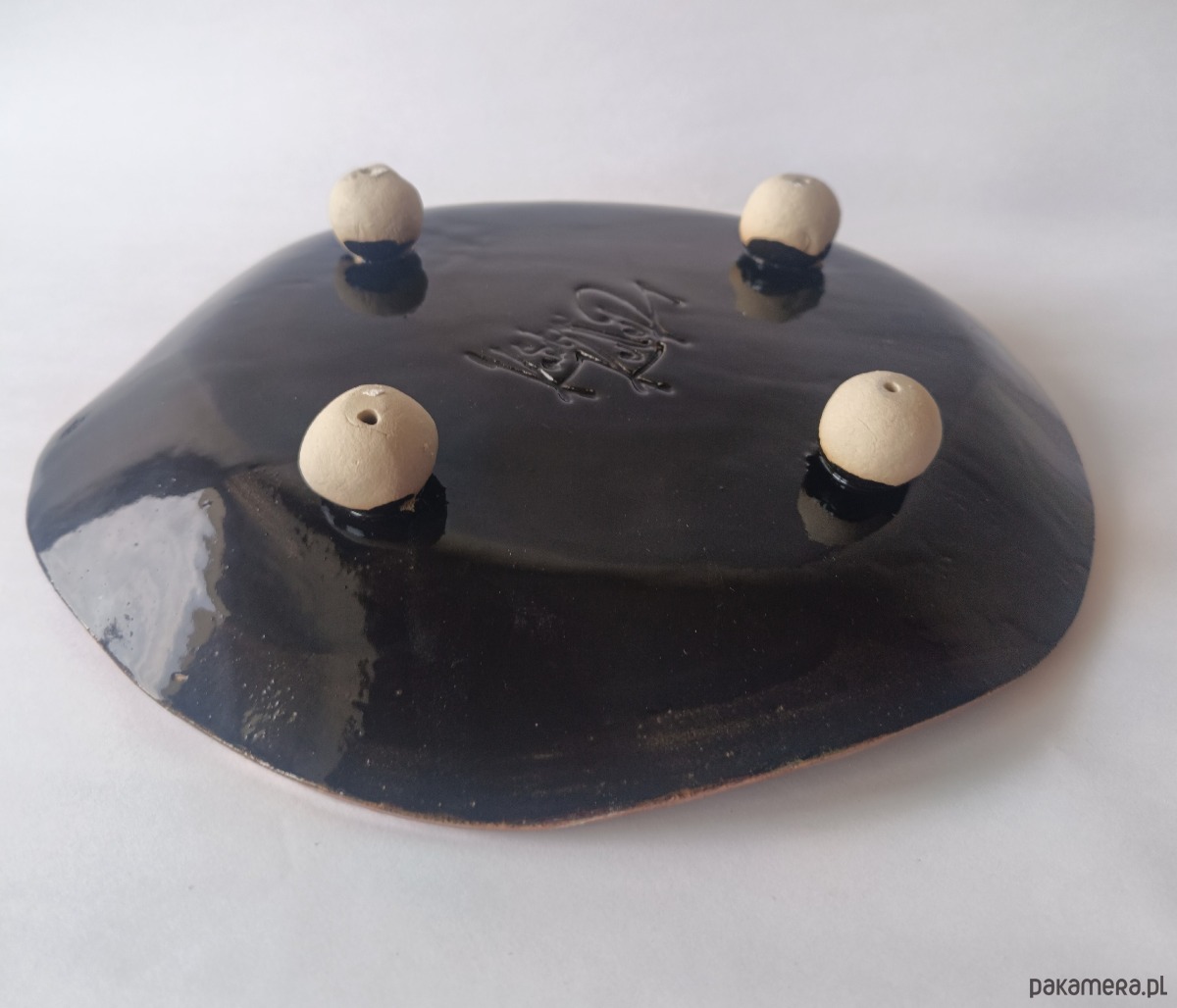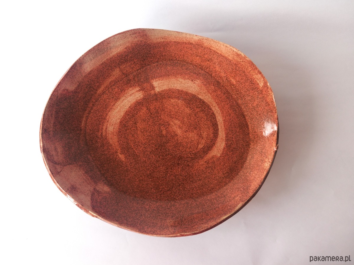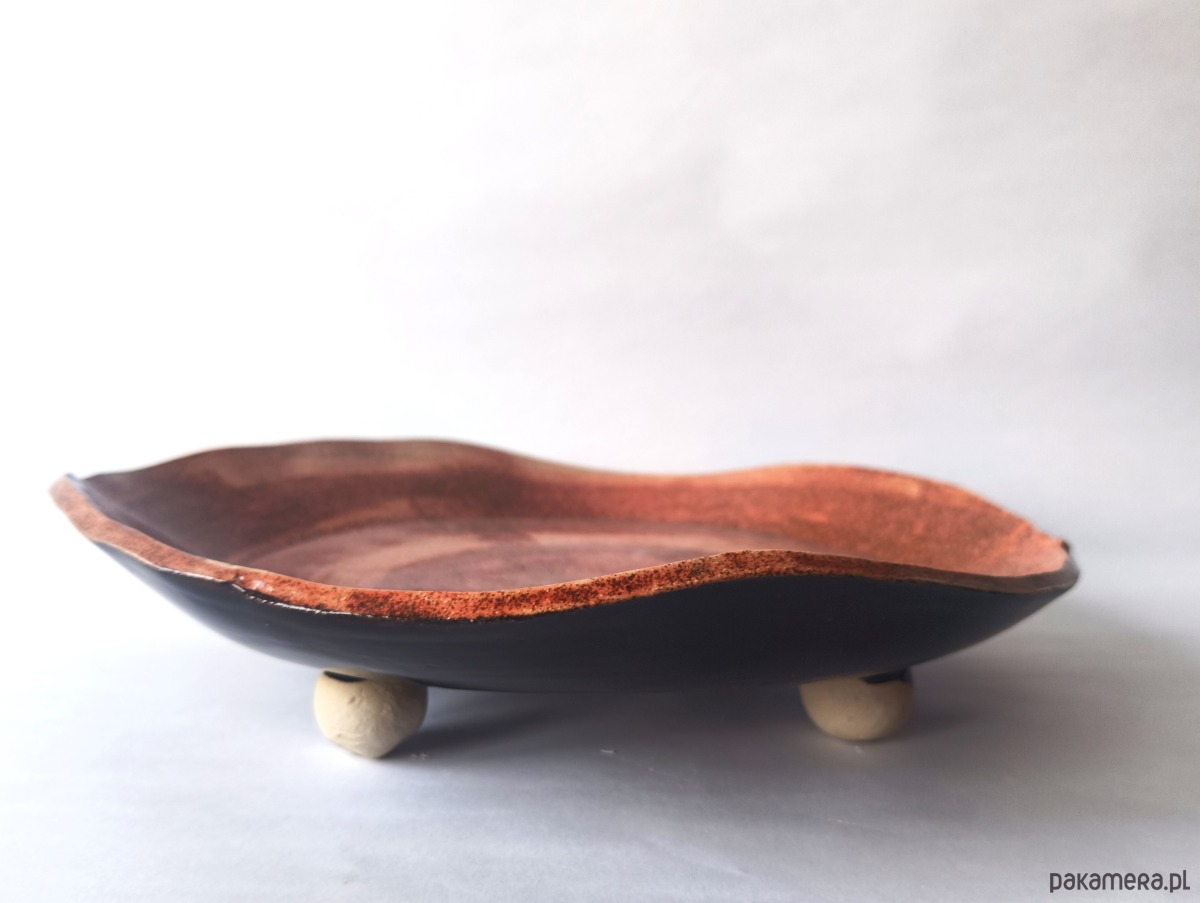 Ręcznie lepiona patera z płata gliny, bez użycia koła garncarskiego.