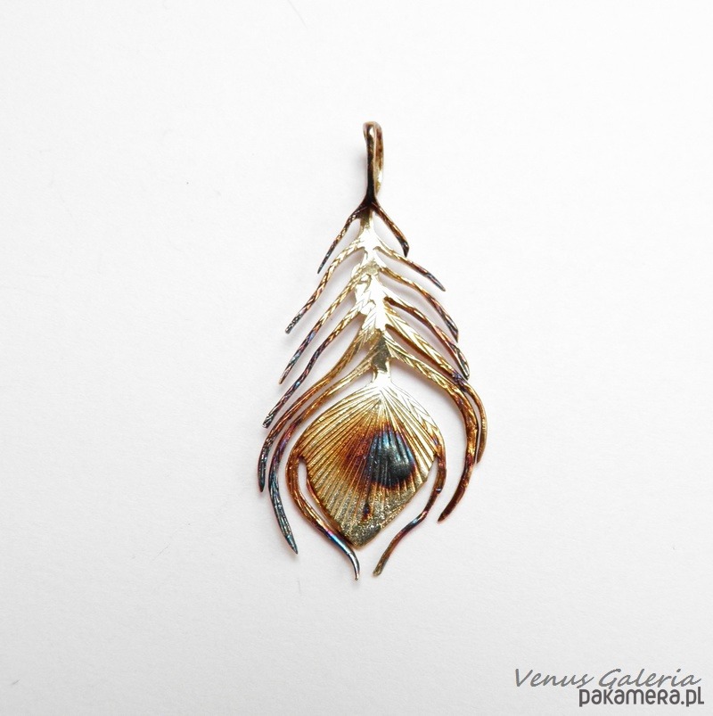 Niezwykła zawieszka wykonana ze srebra przedstawiająca pawie piórko.