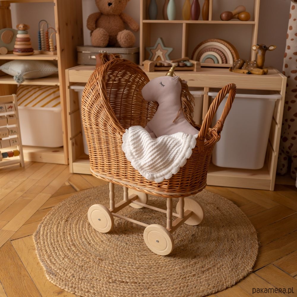 Wózek wiklinowy dla lalki w kolorze naturalnym