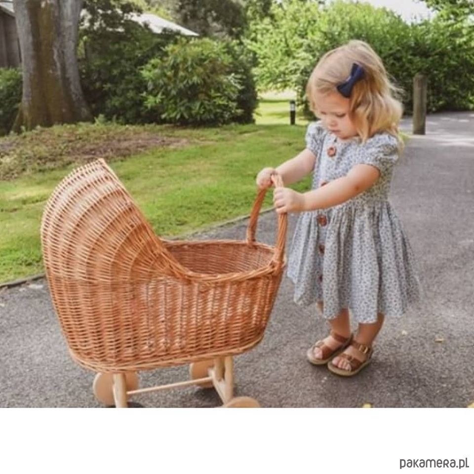 Drewniane kółka pozwalają z łatwością jeździć wózkowi, a wiklinowa rączka pozwala swobodnie pchać wózek. Piękny i modny wiklinowy wózek dla lalek w komplecie z poduszeczką i kołderką. Spełnienie marzeń każdej młodej damy.