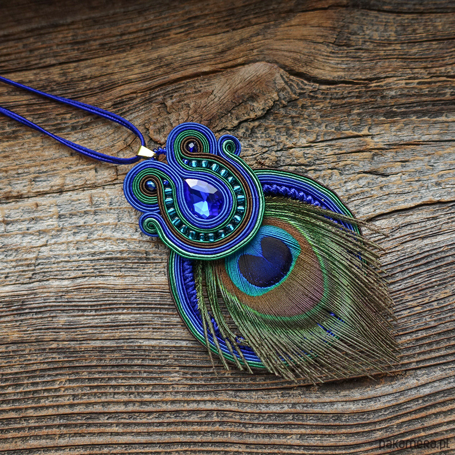 • materiały: sznurki soutache, koraliki Toho, fasetowany kryształ, naturalne pawie pióra