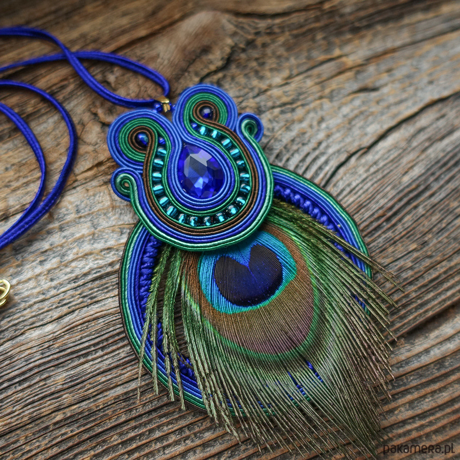 Peacock eye- wisior soutache z piórami