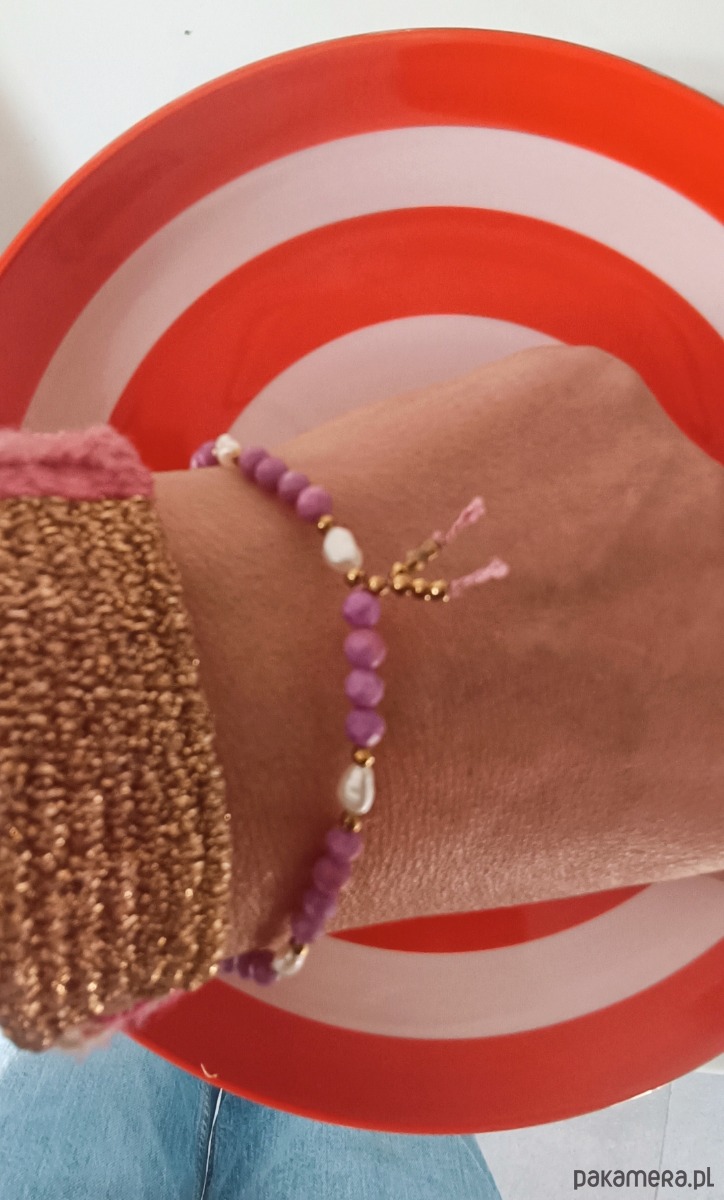 Bransoletka z miksu kamieni fosfosideritu ,hematytów i perełek słodkowodnych z zapięciem ze stali chirurgicznej. Całość na jedwabnej czerwonej wytrzymałej nici.Wykonano ręcznie.Pakuję w eleganckie pudełko z logo.