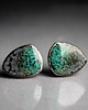 Ceramiczne kolczyki w formie sztyftów, ręcznie wykonane z delikatnej kamionki, jednostronnie szkliwione mieszanką zielonych szkliw, na sztyftach w kolorze srebrnym. Średnica ok. 13mm. Polecam