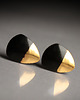 Ceramiczne okrągłe kolczyki w formie sztyftów, ręcznie wykonane ze szlachetnej, czarnej porcelany, jednostronnie szkliwione mieszanką czarnych szkliw i dekorowane złotem naszkliwnym, na sztyftach w kolorze srebrnym. Średnica ok. 13mm. Polecam