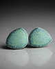 Ceramiczne okrągłe kolczyki w formie sztyftów, ręcznie wykonane z delikatnej błękitno zielonej kamionki, jednostronnie szkliwione mieszanką zielonych szkliw, na sztyftach w kolorze srebrnym. Średnica ok. 13mm. Polecam