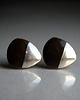Ceramiczne kolczyki w formie sztyftów, ręcznie wykonane z delikatnej kamionki, jednostronnie szkliwione mieszanką czekoladowo brązowych szkliw i dekorowane platyną, na sztyftach w kolorze srebrnym. Średnica ok. 13mm. Polecam