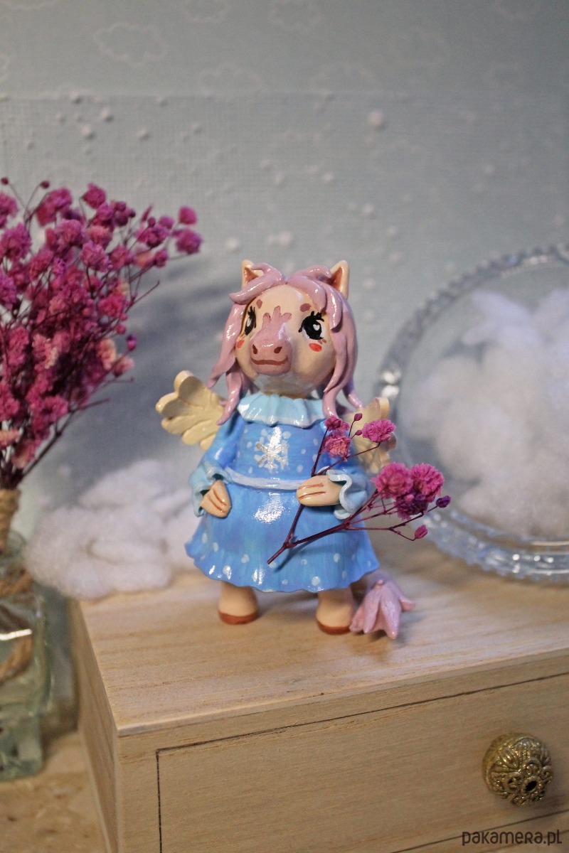 • Ta figurka została wykonana ręcznie z gliny polimerowej wysokiej jakości. Każdy detal powstał z miłością i dbałością o najmniejsze szczegóły, co nadaje jej wyjątkowy charakter. Figurkę pomalowano ręcznie farbami akrylowymi i pokryto lakierem ochronnym.