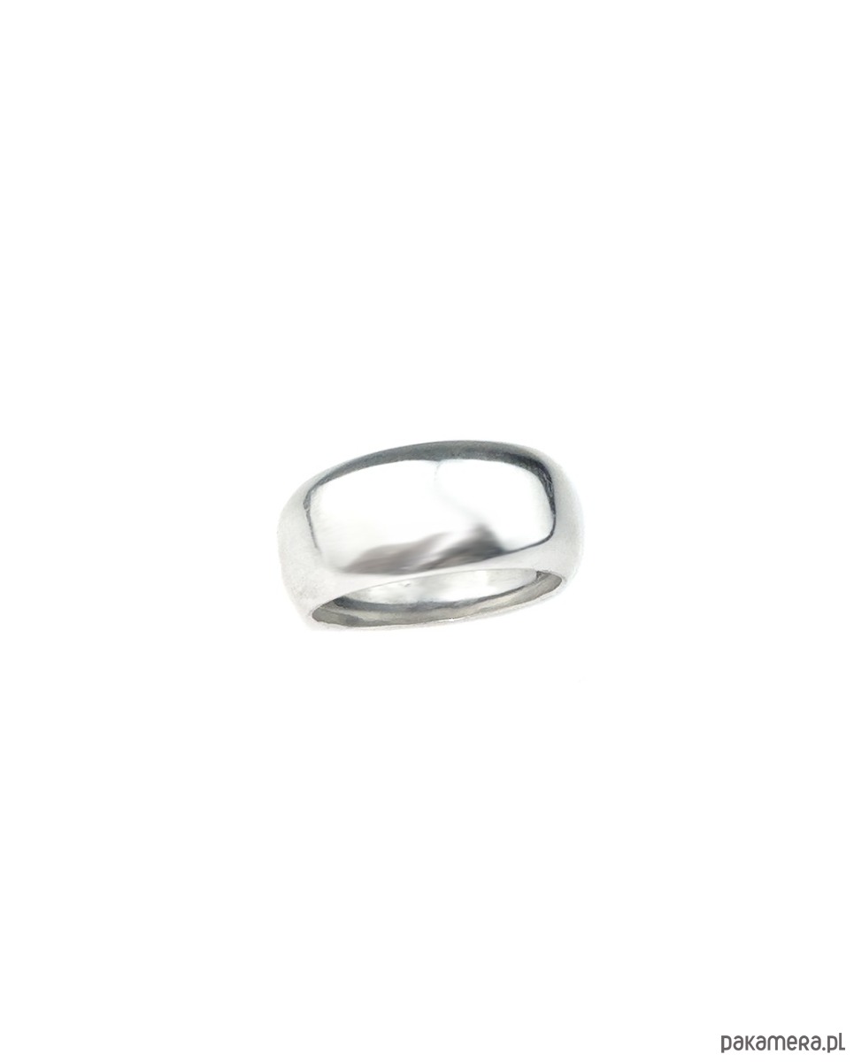 Szeroka, pękata obrączka o gładkiej, wypolerowanej na połysk powierzchni. Wykonana ze srebra 925. Dostępna w wersji srebrnej lub złoconej 24k złotem.