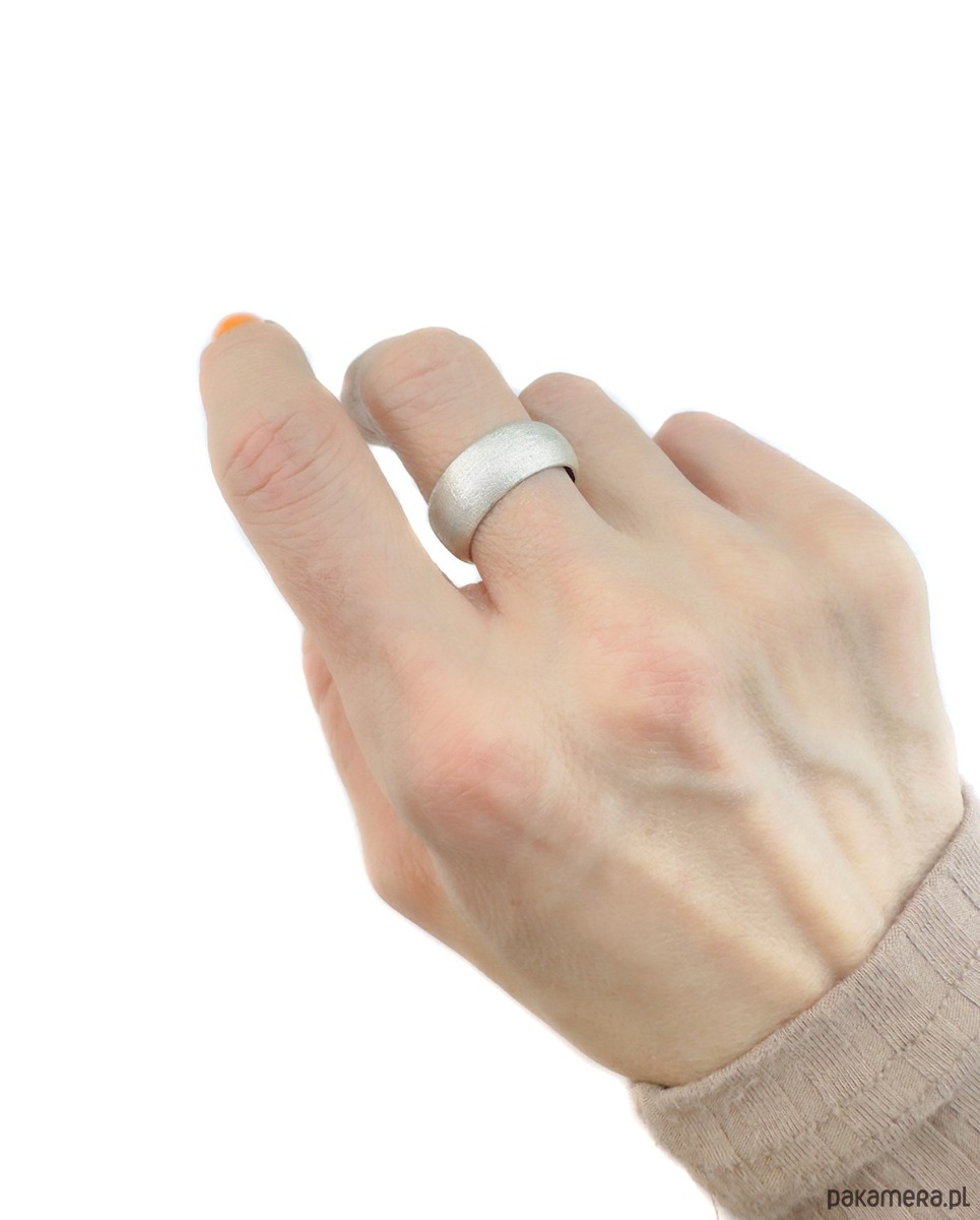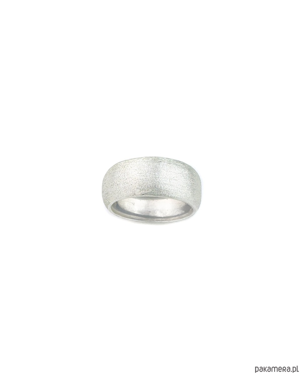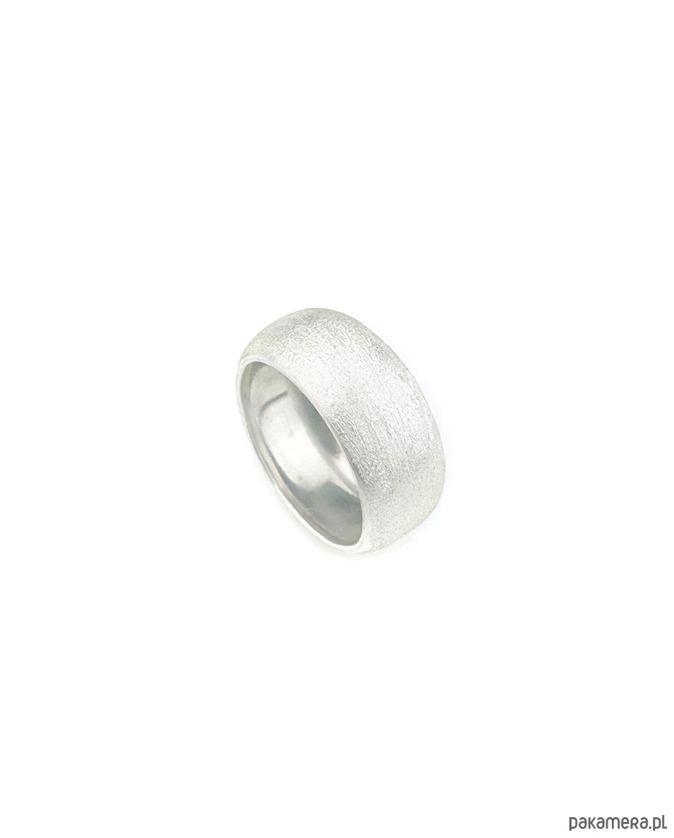 Szeroka, pękata obrączka o satynowanej powierzchni. Wykonana ze srebra 925. Dostępna w wersji srebrnej lub złoconej 24k złotem.