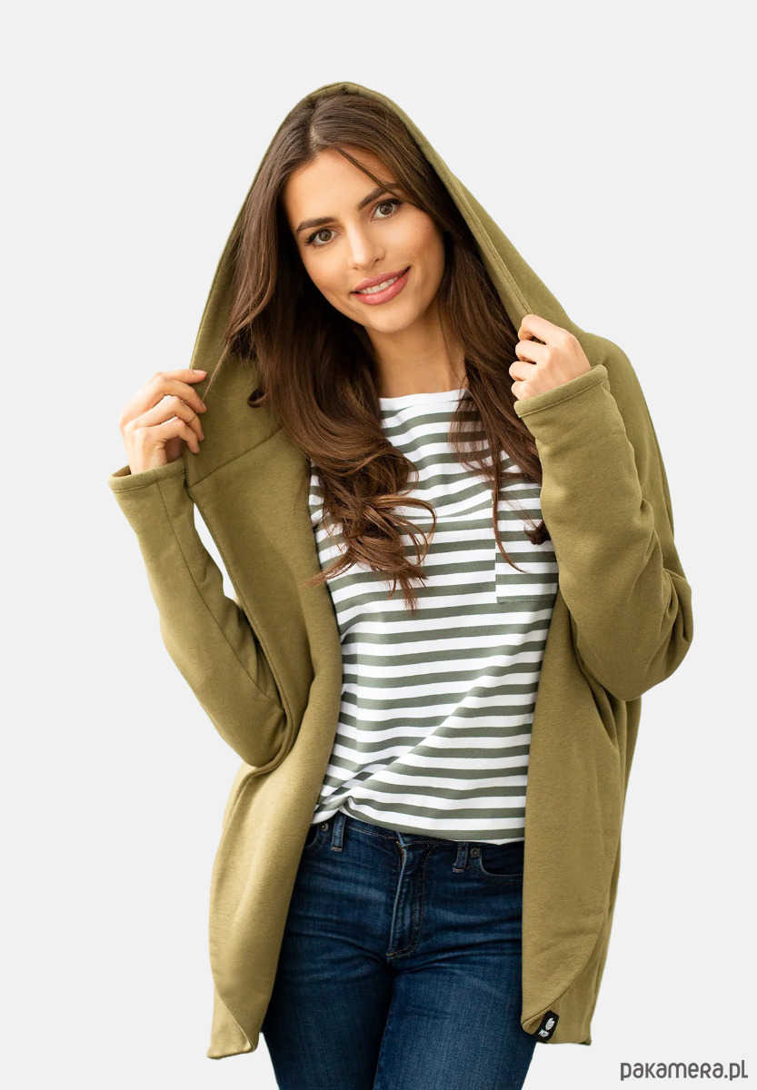 Naszą pelerynę możecie nosić od rana do wieczora, a mnogość stylizacji ogranicza tylko Wasza wyobraźnia. Do pracy, na spacer czy na wieczorne wyjście ze znajomymi – będzie pasować na każdą okazję. Cieszy nie tylko wizualnie, ale też swoją funkcjonalnością. Wyposażona jest w obszerny kaptur, głębokie kieszenie i dłuższy tył, co sprawia, że chcemy się w nią owinąć już teraz. Rozmiar jest uniwersalny i pasuje osobom, które noszą zazwyczaj XS, S, M lub L.