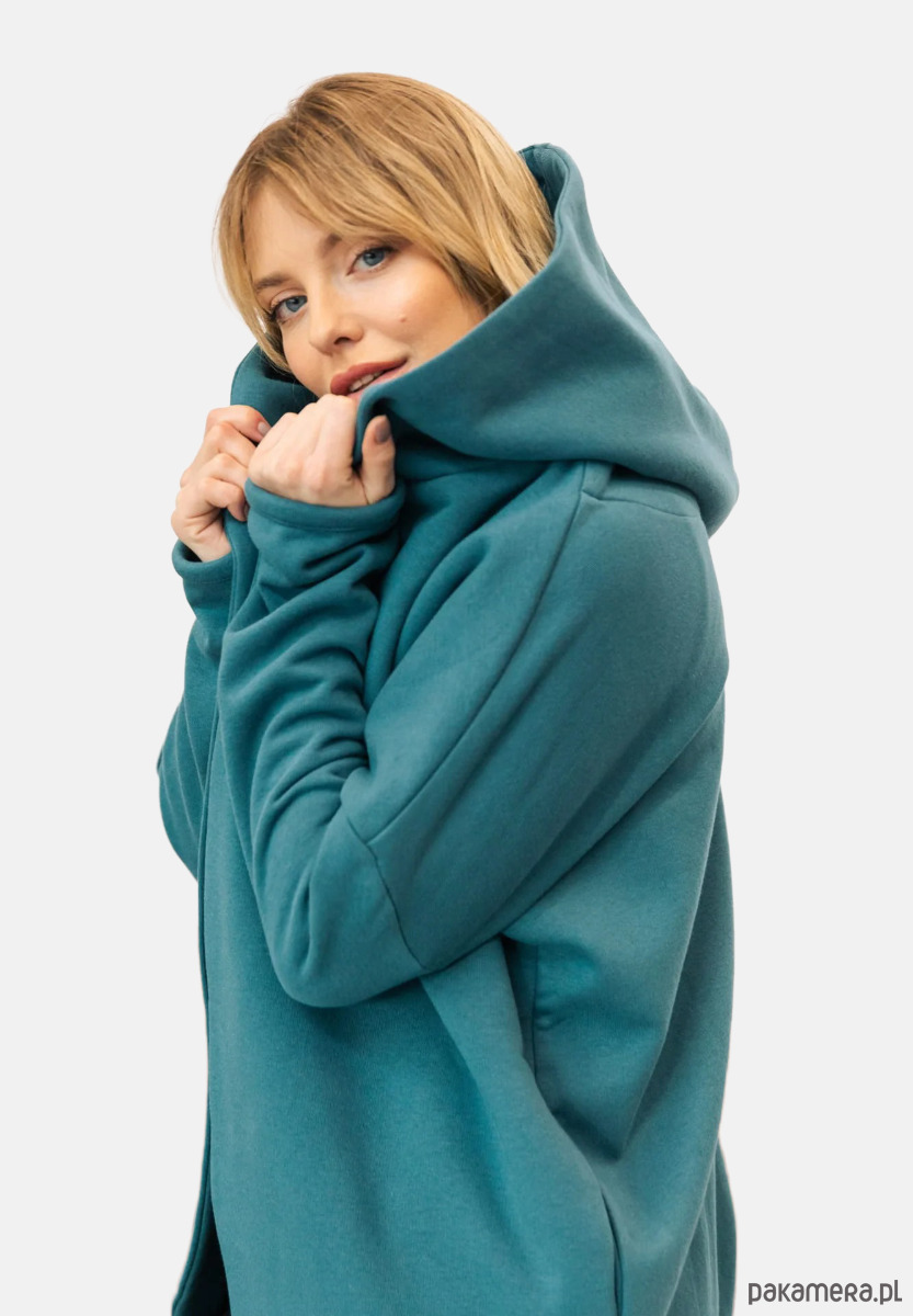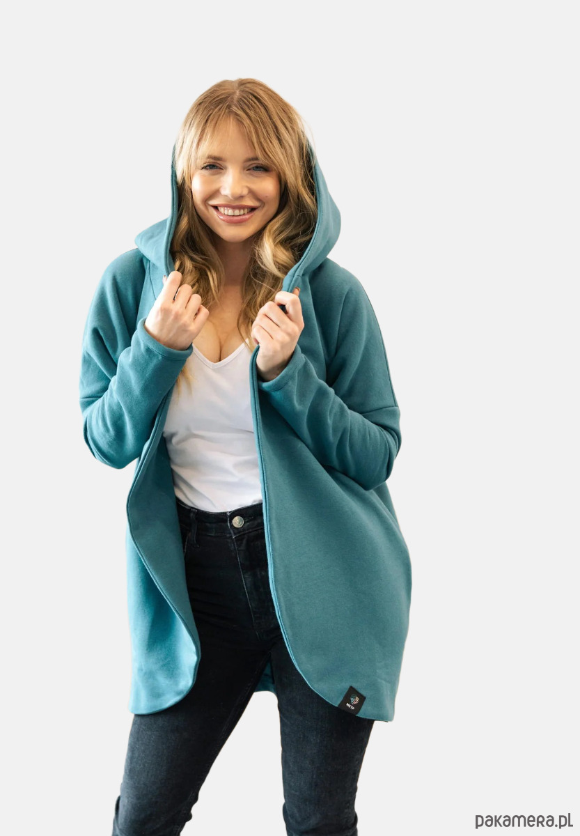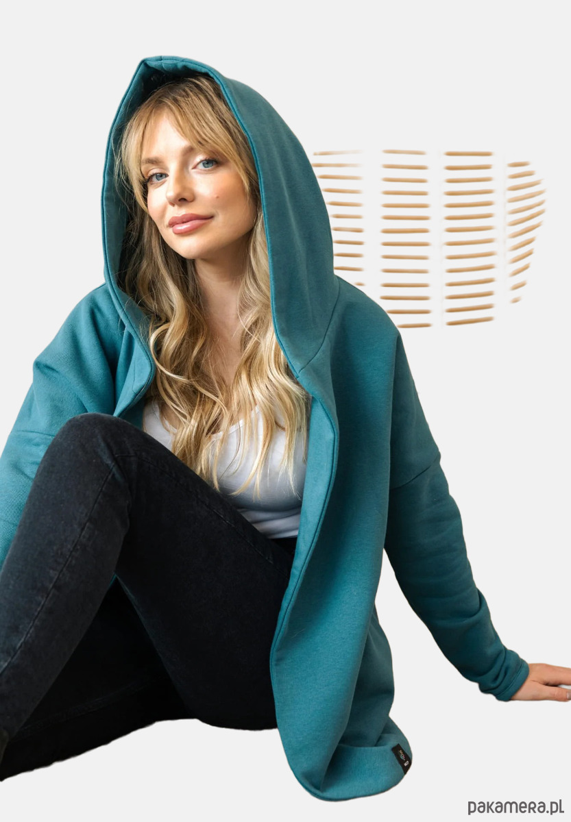 Naszą pelerynę możecie nosić od rana do wieczora, a mnogość stylizacji ogranicza tylko Wasza wyobraźnia. Do pracy, na spacer czy na wieczorne wyjście ze znajomymi – będzie pasować na każdą okazję. Cieszy nie tylko wizualnie, ale też swoją funkcjonalnością. Wyposażona jest w obszerny kaptur, głębokie kieszenie i dłuższy tył, co sprawia, że chcemy się w nią owinąć już teraz. Rozmiar jest uniwersalny i pasuje osobom, które noszą zazwyczaj XS, S, M lub L.