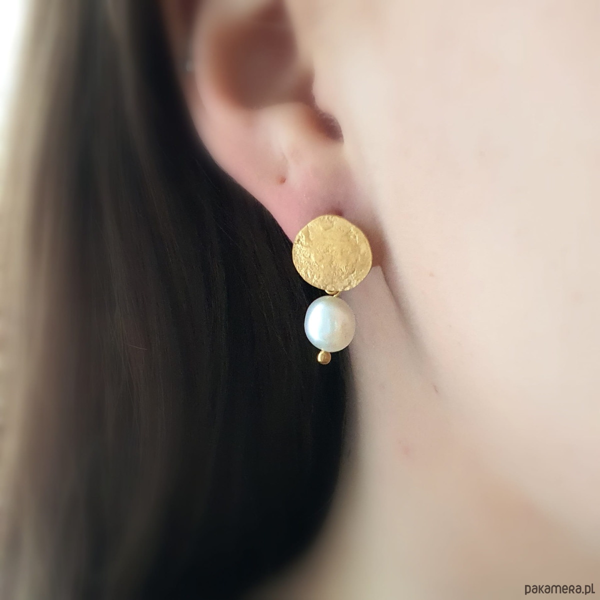 Te eleganckie kolczyki wykonane ze srebra próby 925, subtelnie pozłocone, z małymi, naturalnymi białymi perłami zawieszonymi w samym centrum, symbolizują harmonię natury i piękno delikatnych kontrastów.