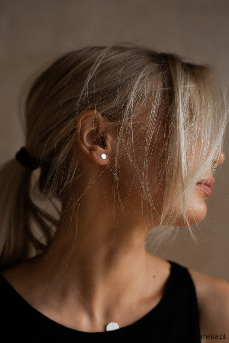 – ręcznie wykonane kolczyki PEŁNIA mini na sztyft z klasycznym, motylkowym zapięciem; zapięcie nie jest widoczne na zdjęciu