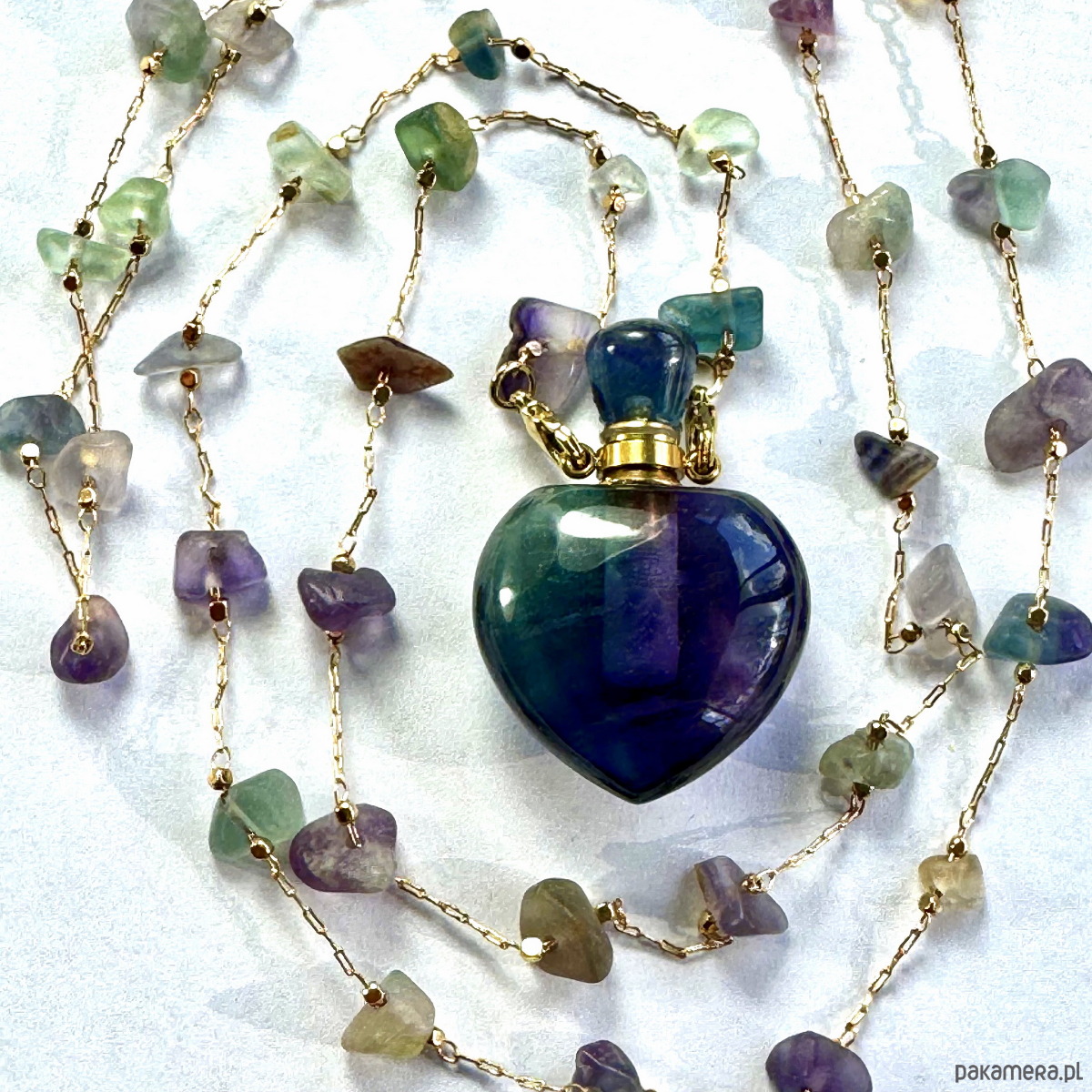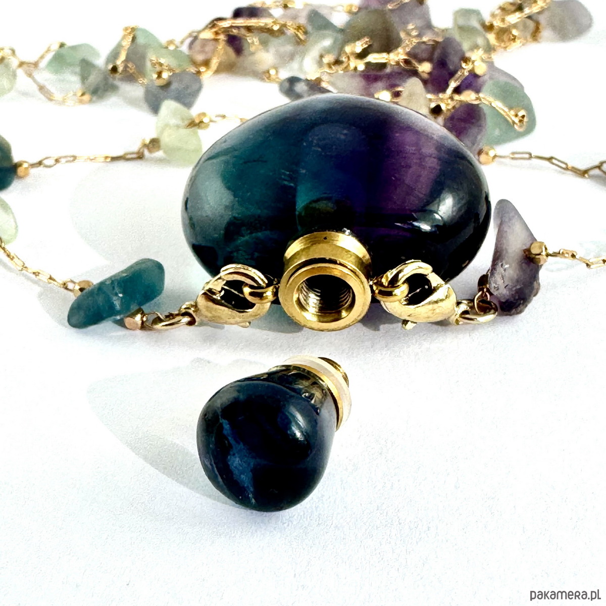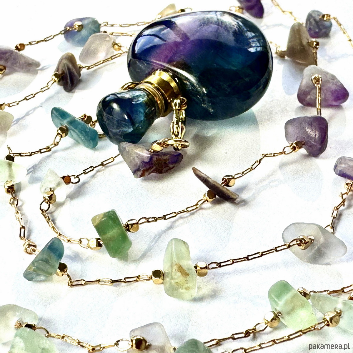 Wisiorek stworzony z kamieni naturalnych, na uroczej pozłacanej plecionce. Zakończony kamienną perfumetką, która daje Ci możliwość noszenia i używania Twoich ulubionych perfumów zawsze kiedy potrzebujesz.