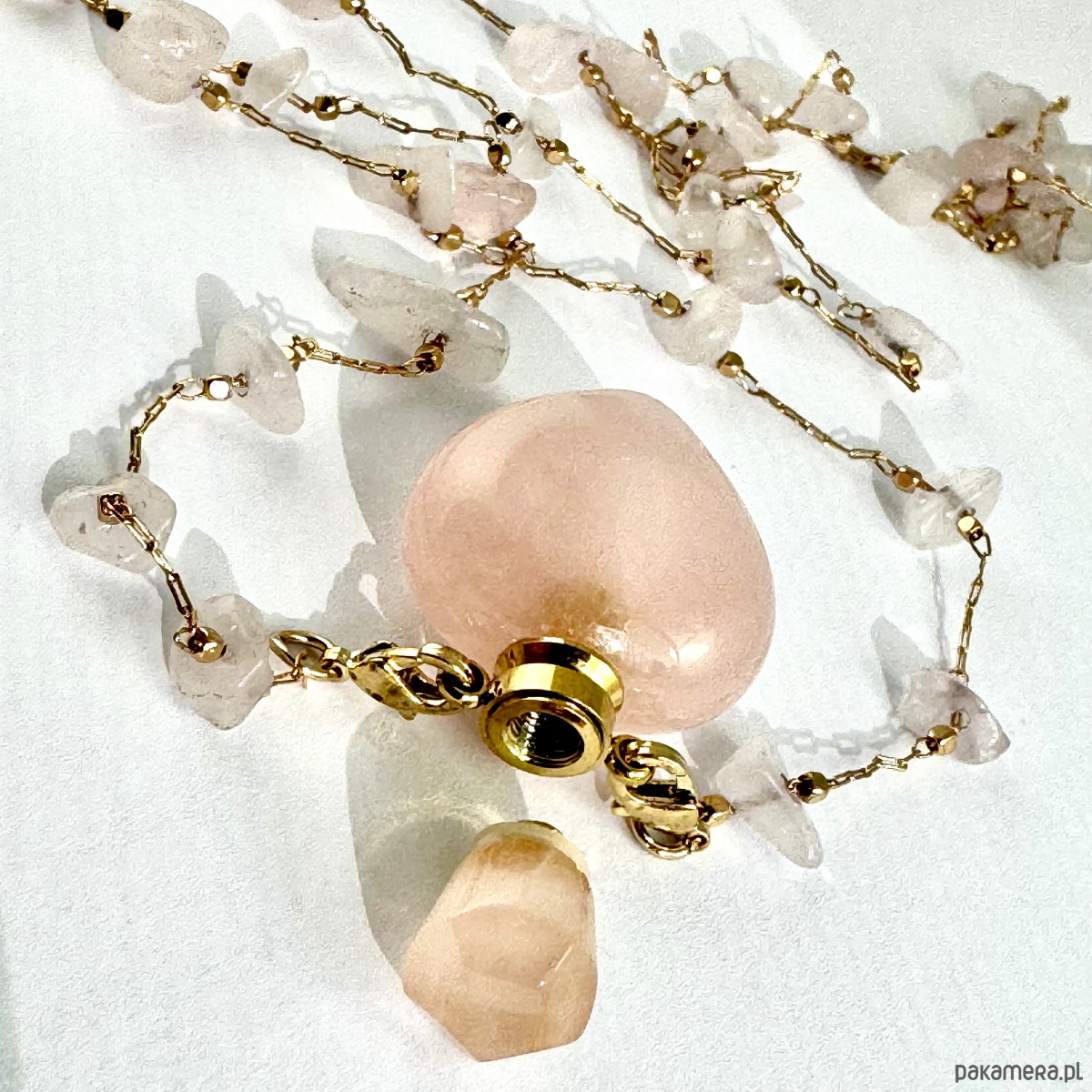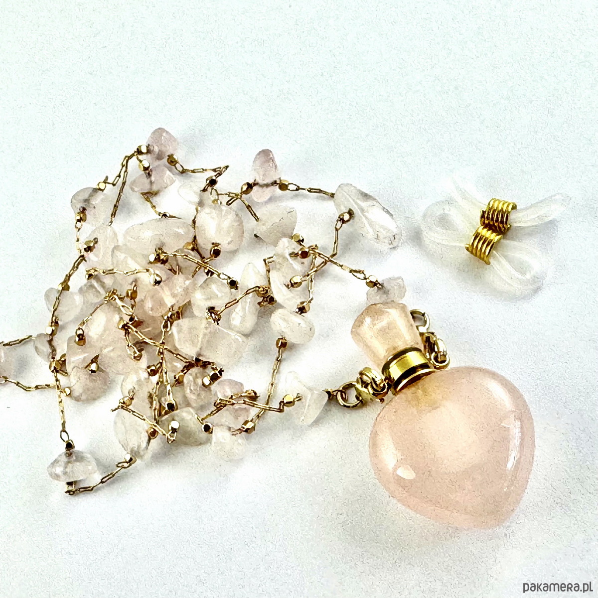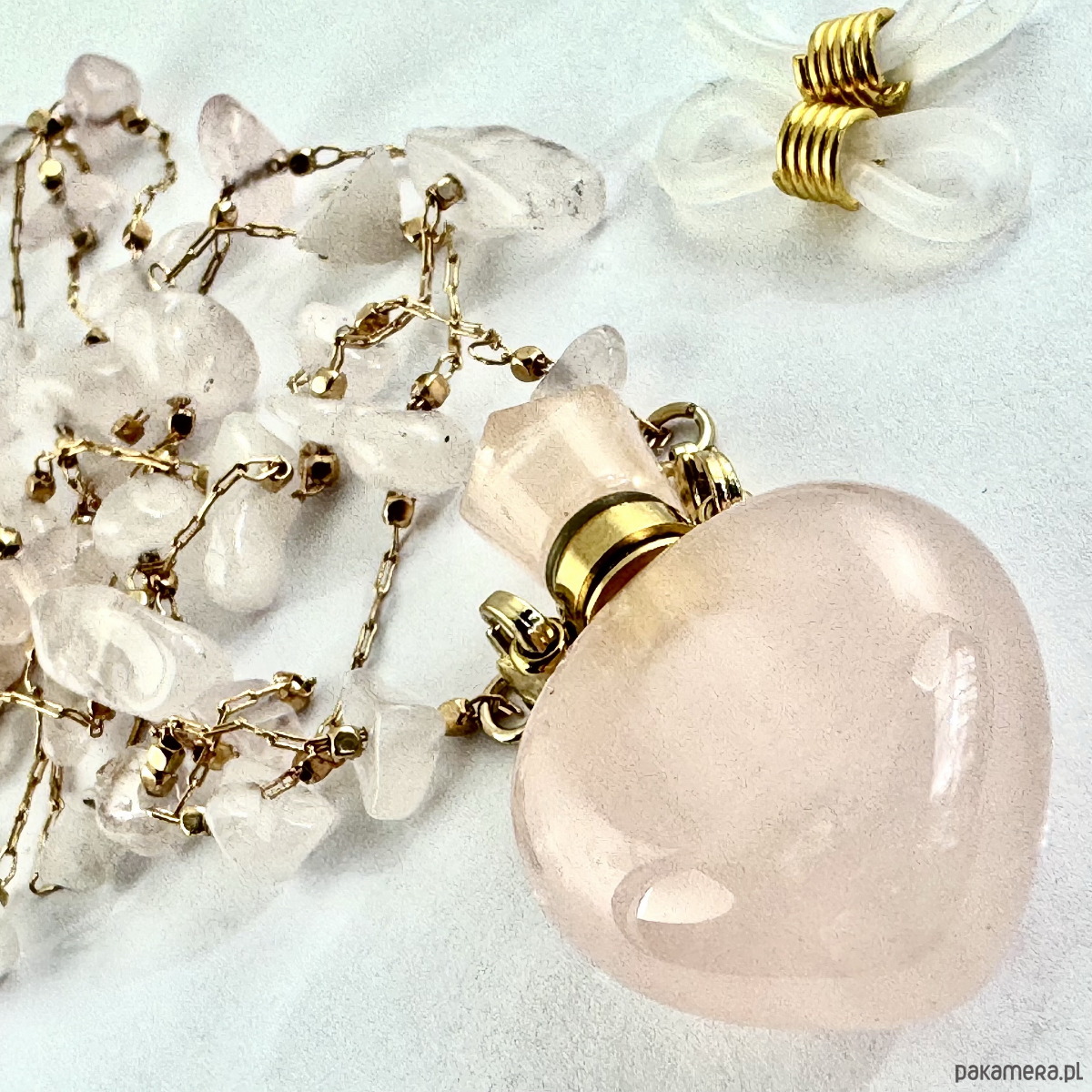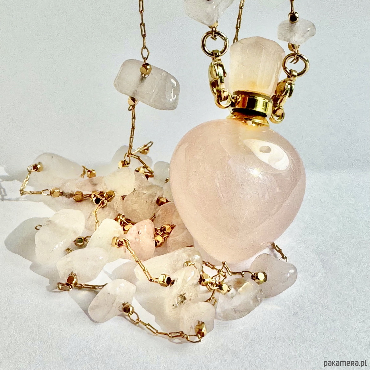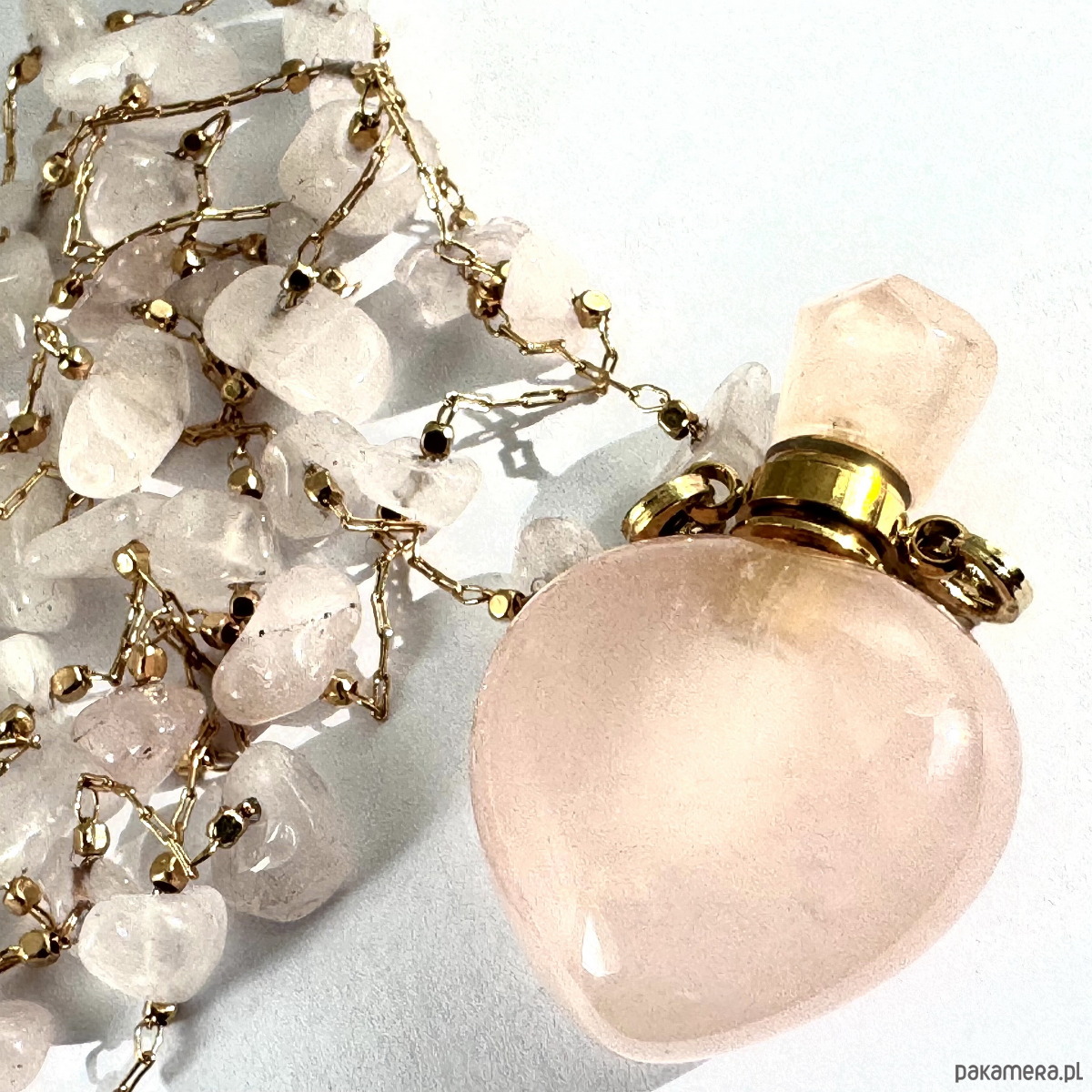 Wisiorek stworzony z kamieni naturalnych, na uroczej pozłacanej plecionce. Zakończony kamienną perfumetką, która daje Ci możliwość noszenia i używania Twoich ulubionych perfumów zawsze kiedy potrzebujesz.