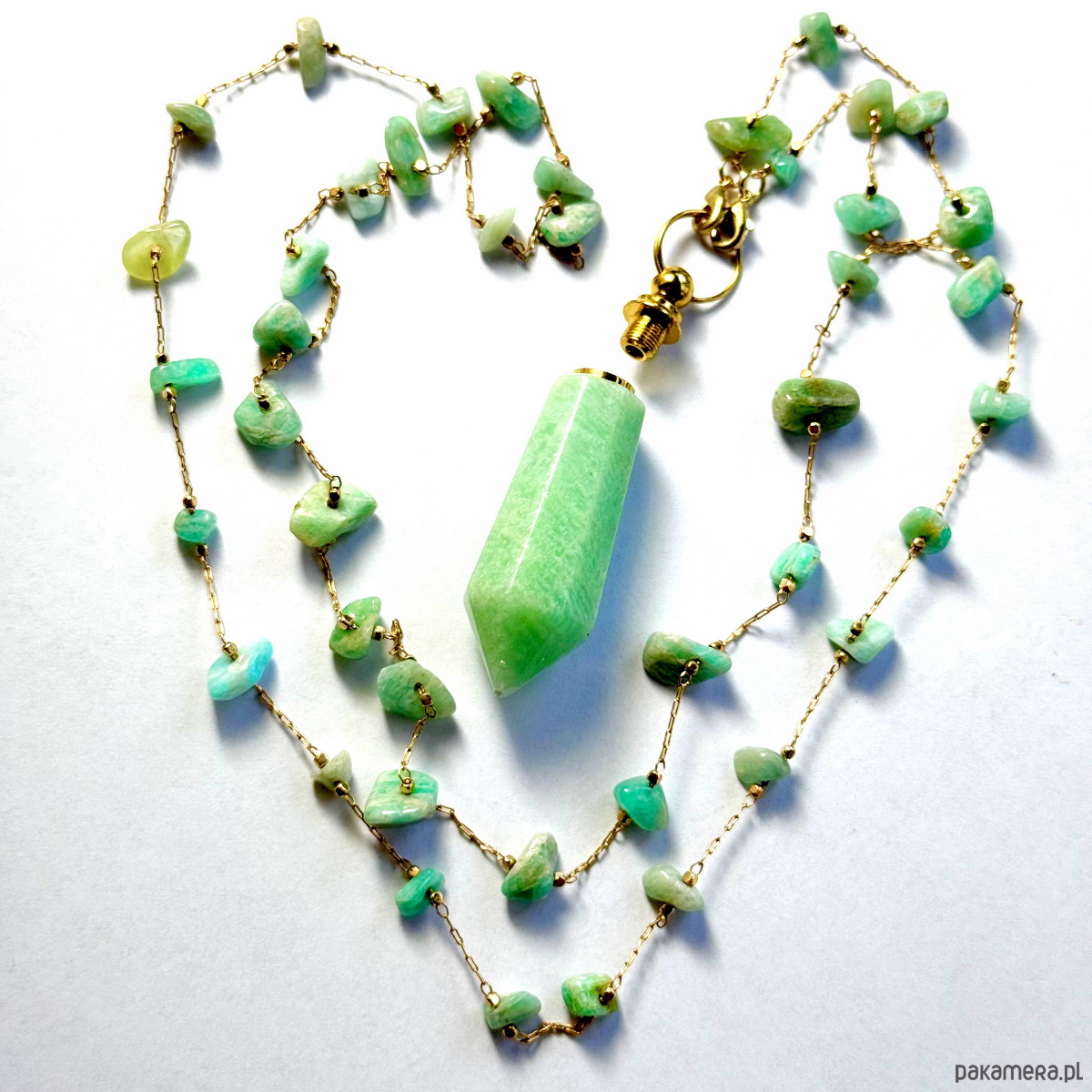 Wisiorek stworzony z kamieni naturalnych, na uroczej pozłacanej plecionce. Zakończony kamienną perfumetką, która daje Ci możliwość noszenia i używania Twoich ulubionych perfumów zawsze kiedy potrzebujesz.