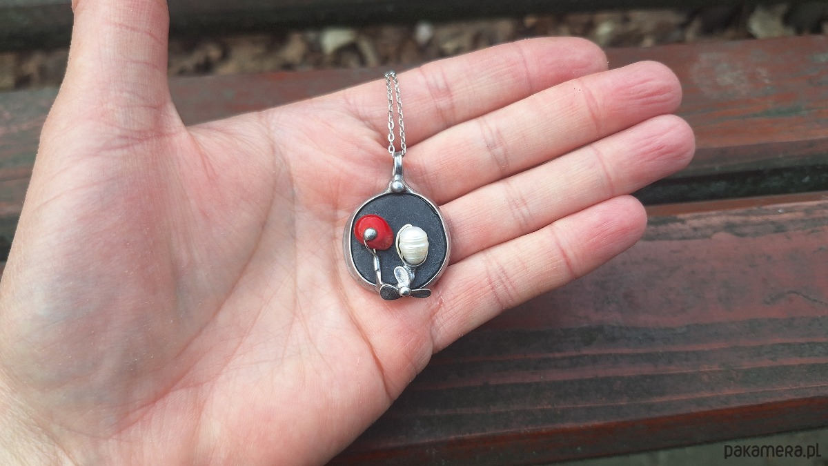 Perła i koral - wisiorek