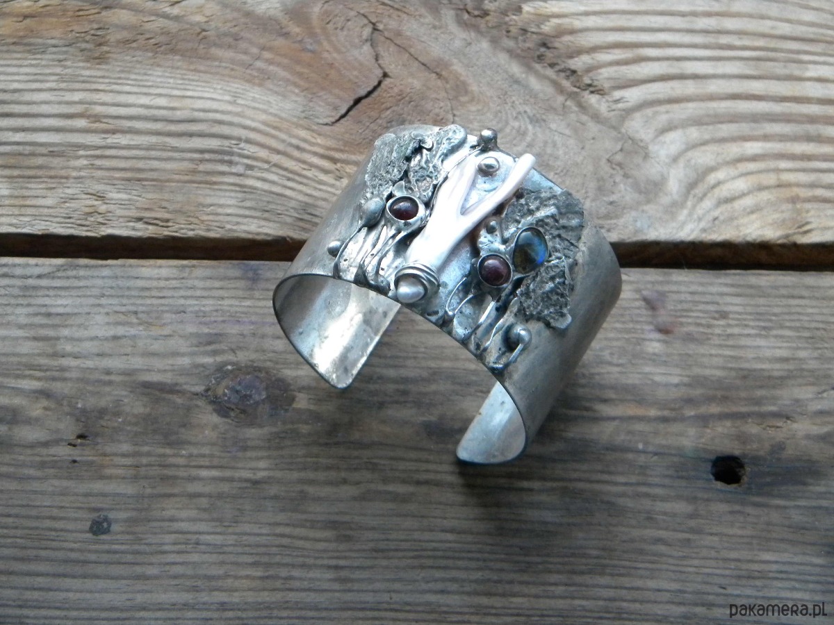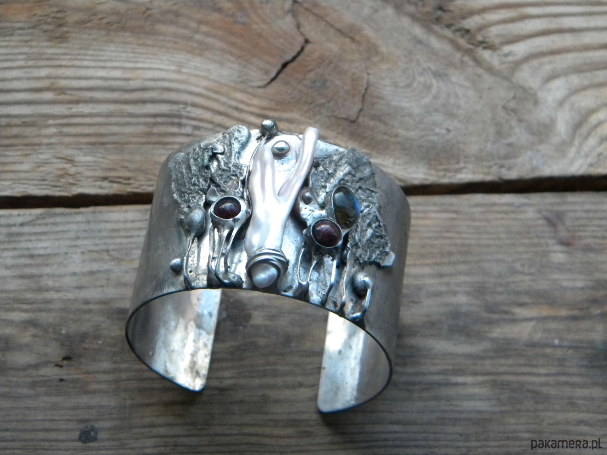 Perła / labradoryt / granat - roślina - BRANSOLETA MANKIET CUFF