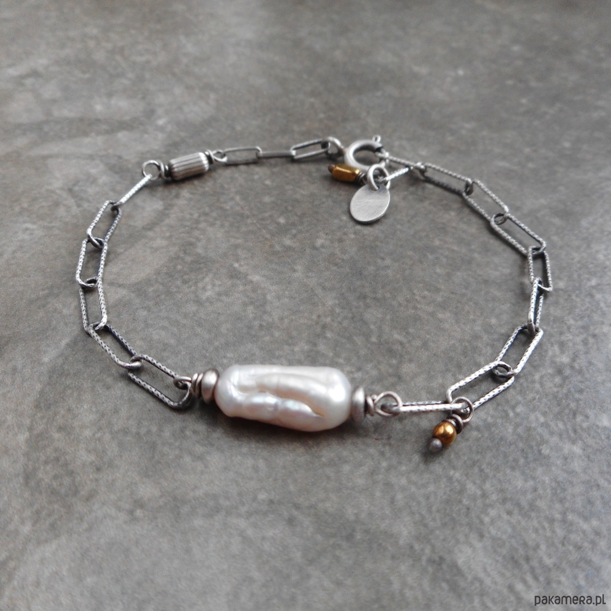 Efektowna bransoletka wykonana z kamieni naturalnych i szlachetnego srebra; wygodna i uniwersalna, minimalistyczny łańcuszek ozdobiony naturalną perłą.