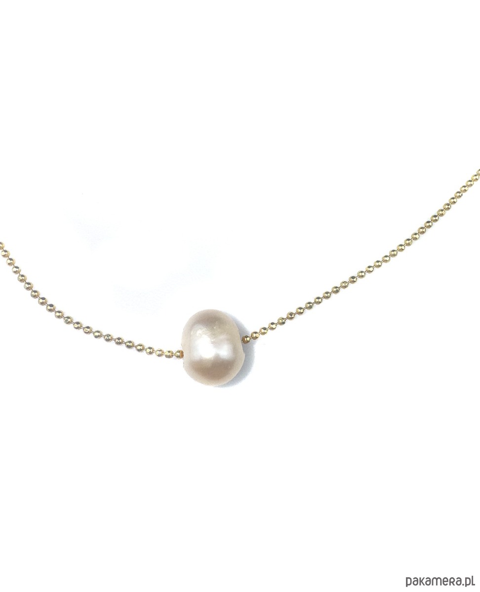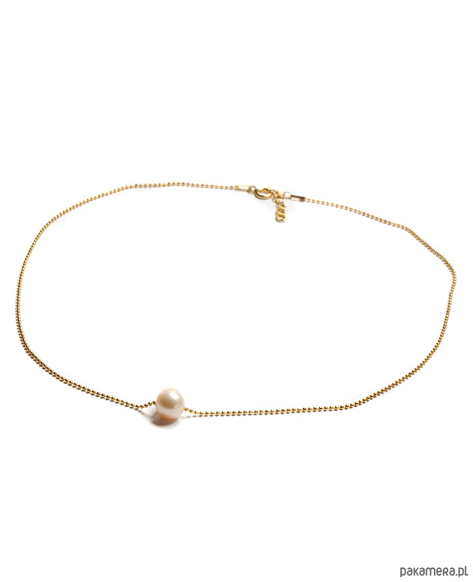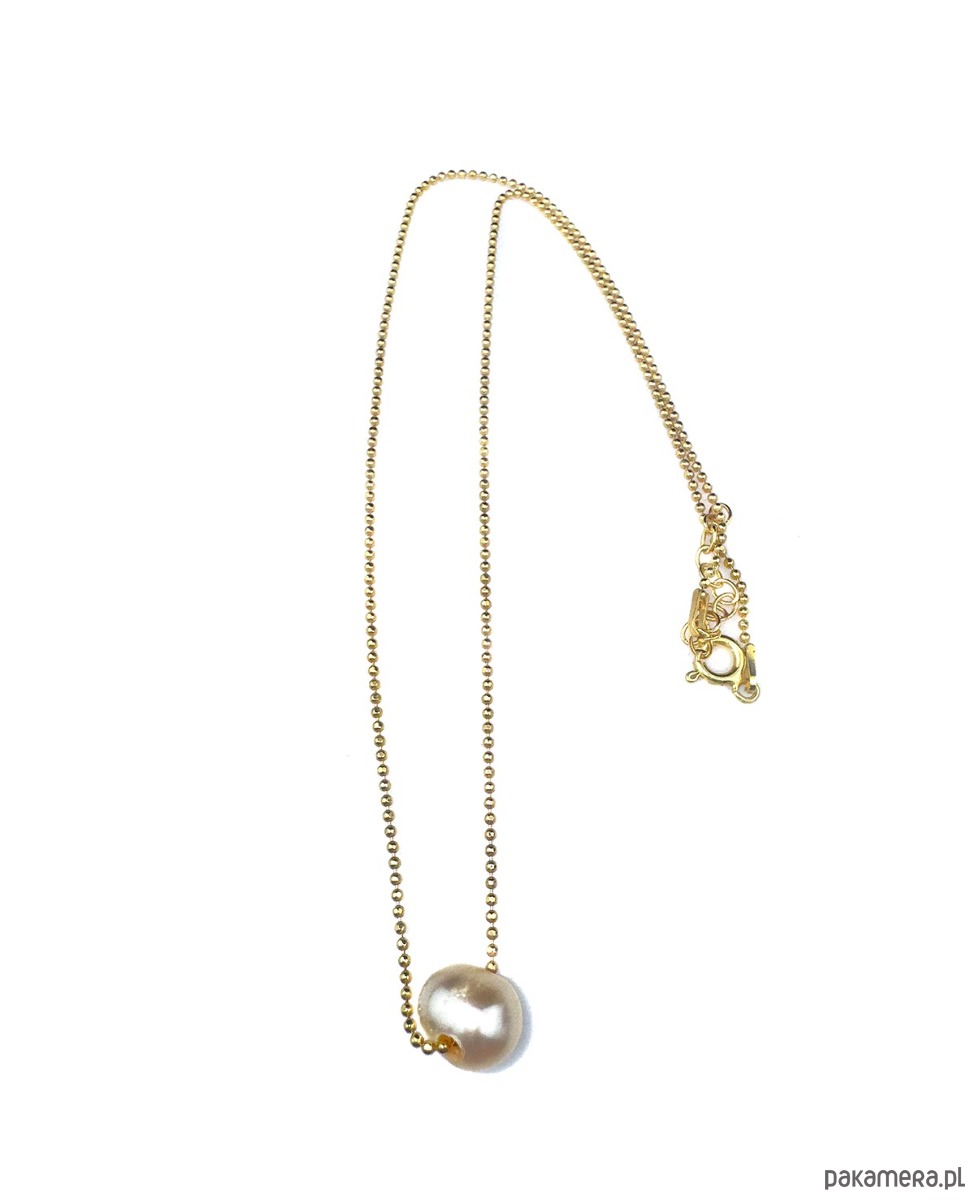 Delikatny naszyjnik z kremową perłą naturalną. Kulkowy łańcuszek ze srebra 925, złoconego 24k złotem.