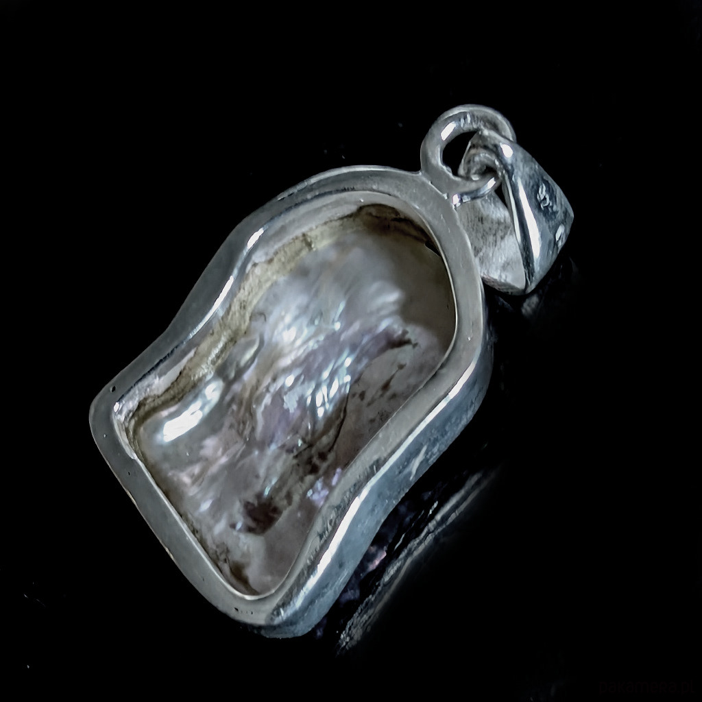 Wisiorek wykonany ze srebra próby 925 oraz przepięknej perły słodkowodnej. Różowa poświata.
