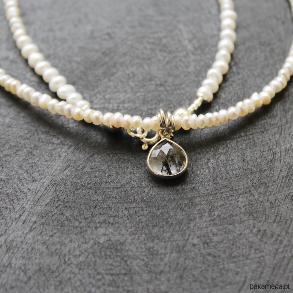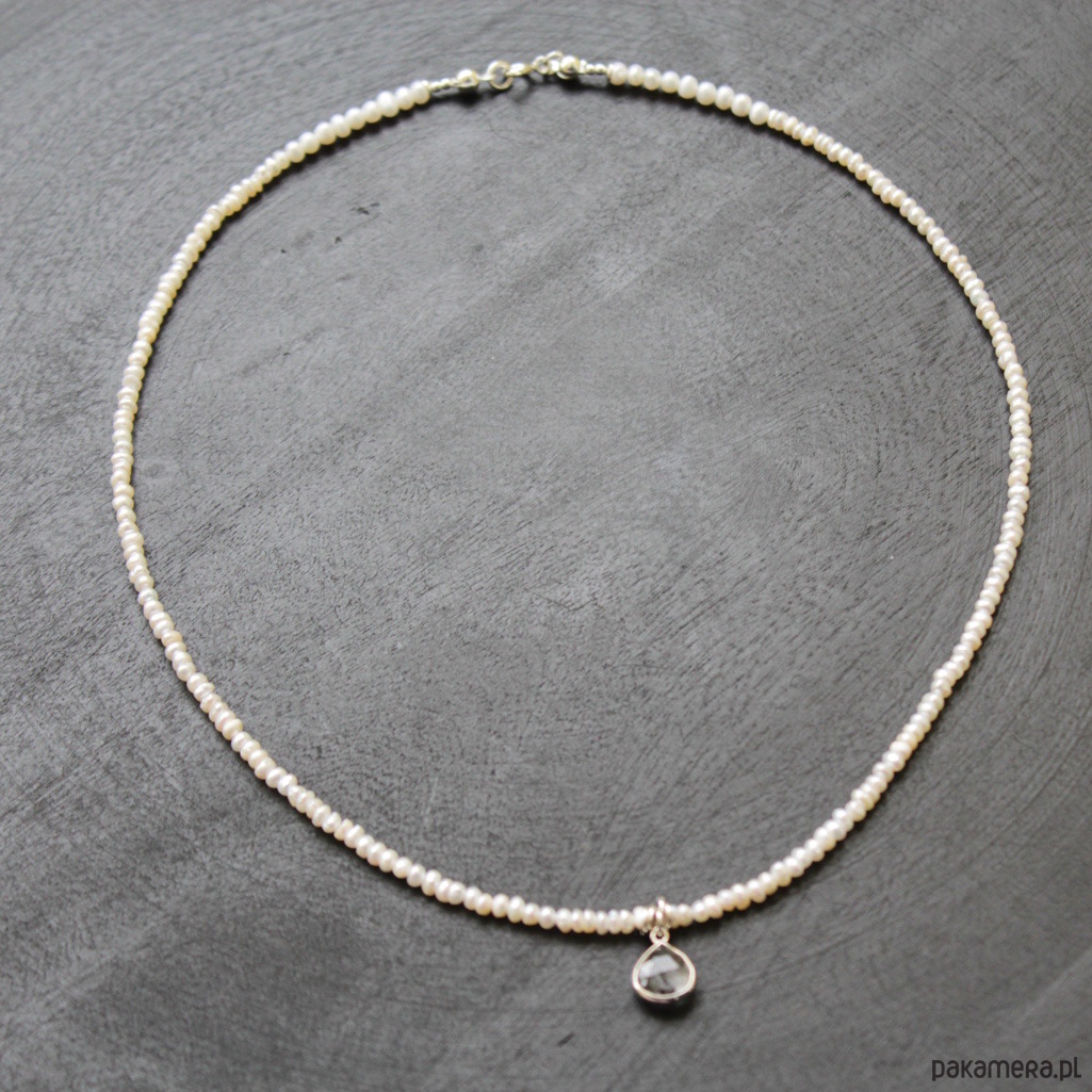 Naszyjnik wykonany został ze srebra próby 925 oraz naturalnych perełek hodowlanych wielkości 0,3 cm.