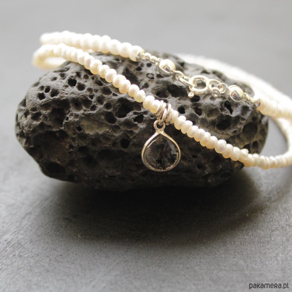 Naszyjnik wykonany został ze srebra próby 925 oraz naturalnych perełek hodowlanych wielkości 0,3 cm.