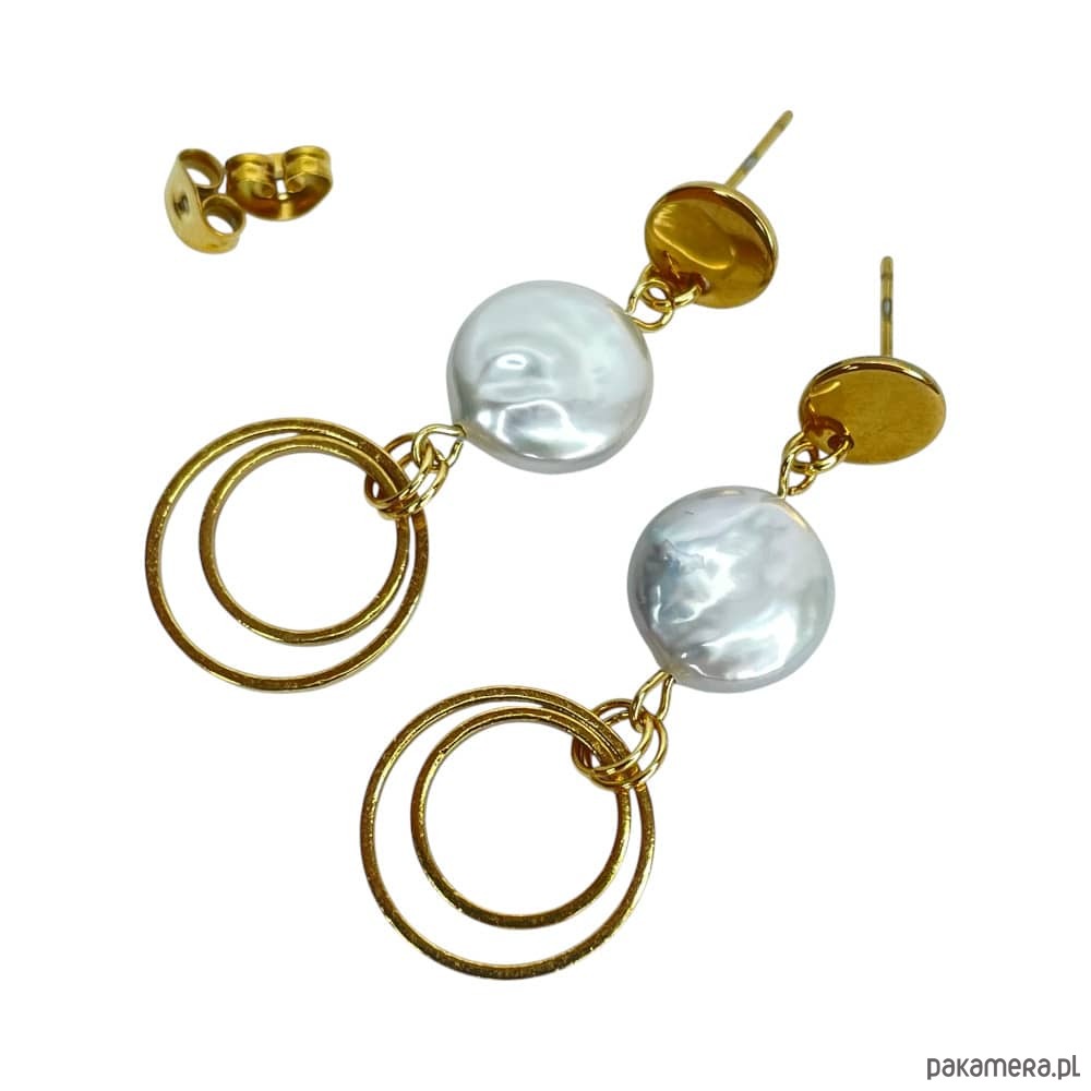 Materiał: perła naturalna hodowlana, stal chirurgiczna pozłacana,