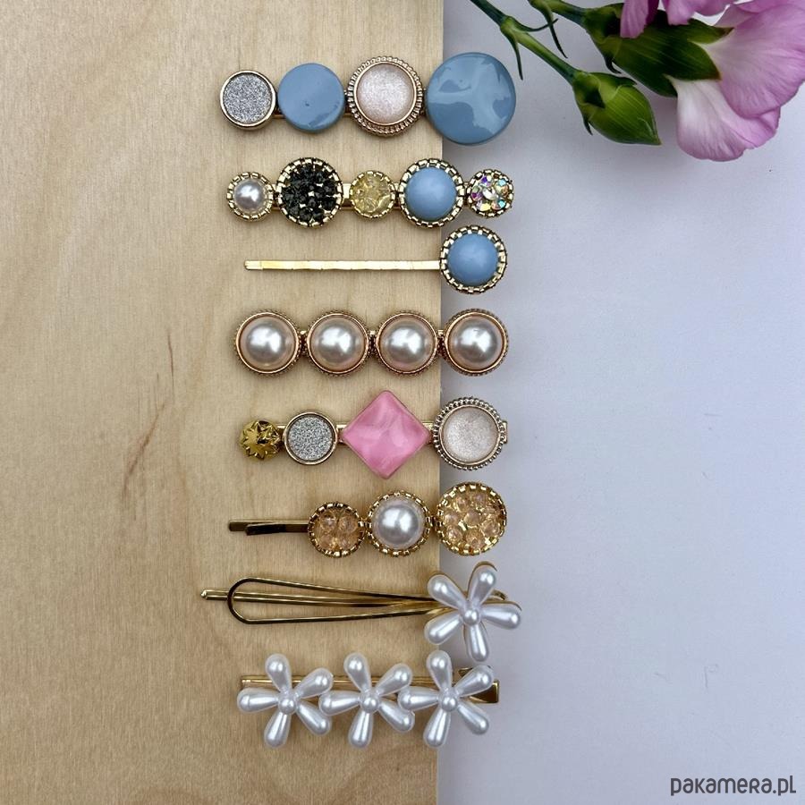 Nasz komplet eleganckich wsuwek i spinek do włosów składa się z aż 7 różnych ozdób. W tym zestawie znajdziesz: