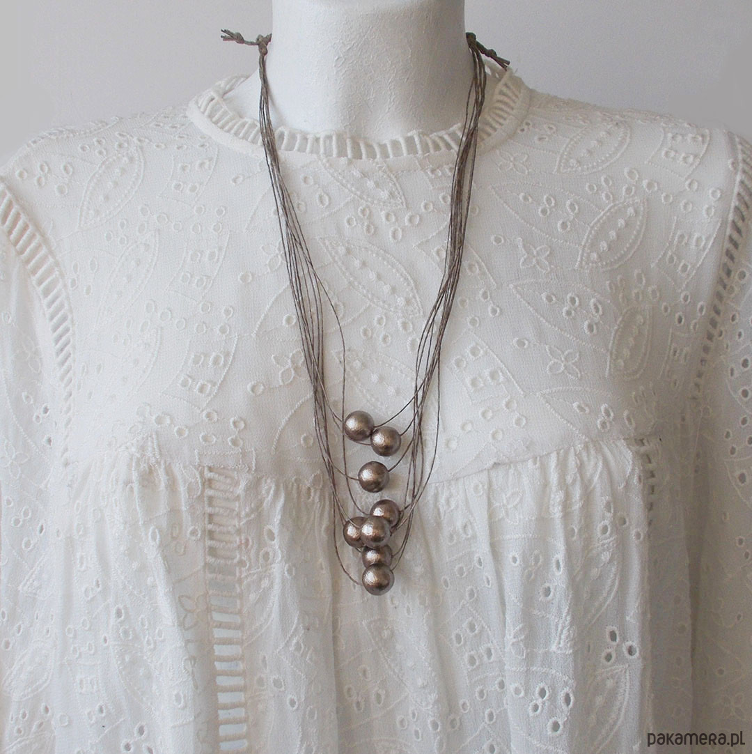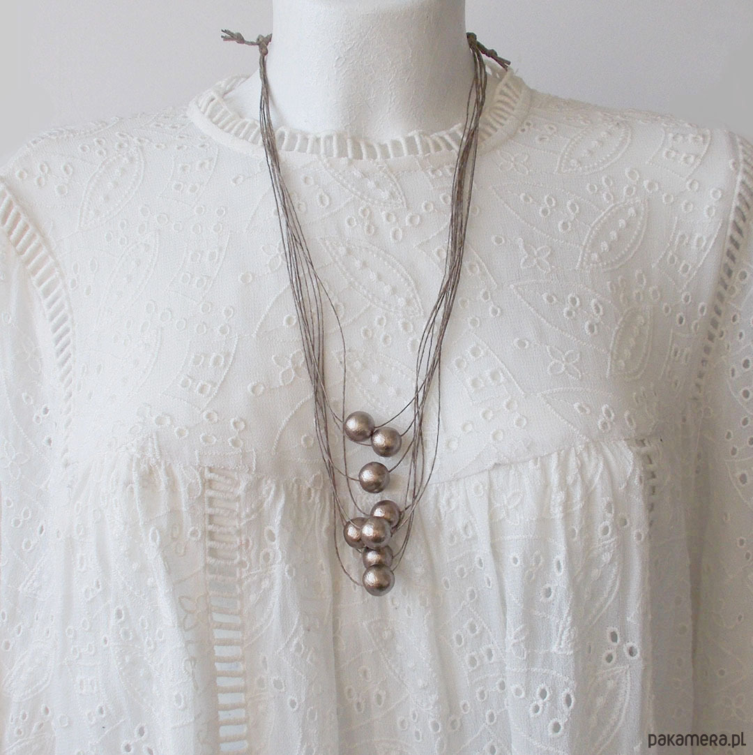 Lniany naszyjnik z lekkimi kulami pochodzącymi z Japonii