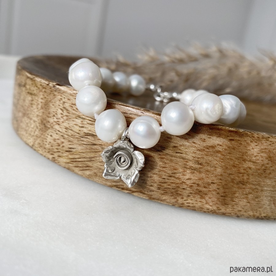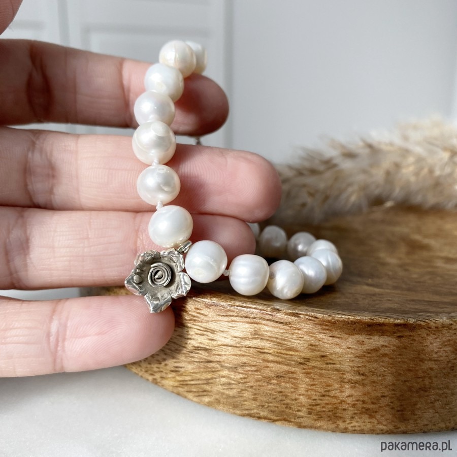 Efektowna bransoletka wykonana ze srebra próby 925 oraz naturalnych pereł hodowanych