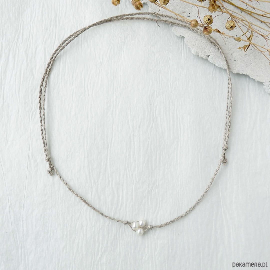 Wygodny, lekki, minimalistyczny naszyjnik wypleciony z nitek naturalnego lnu.