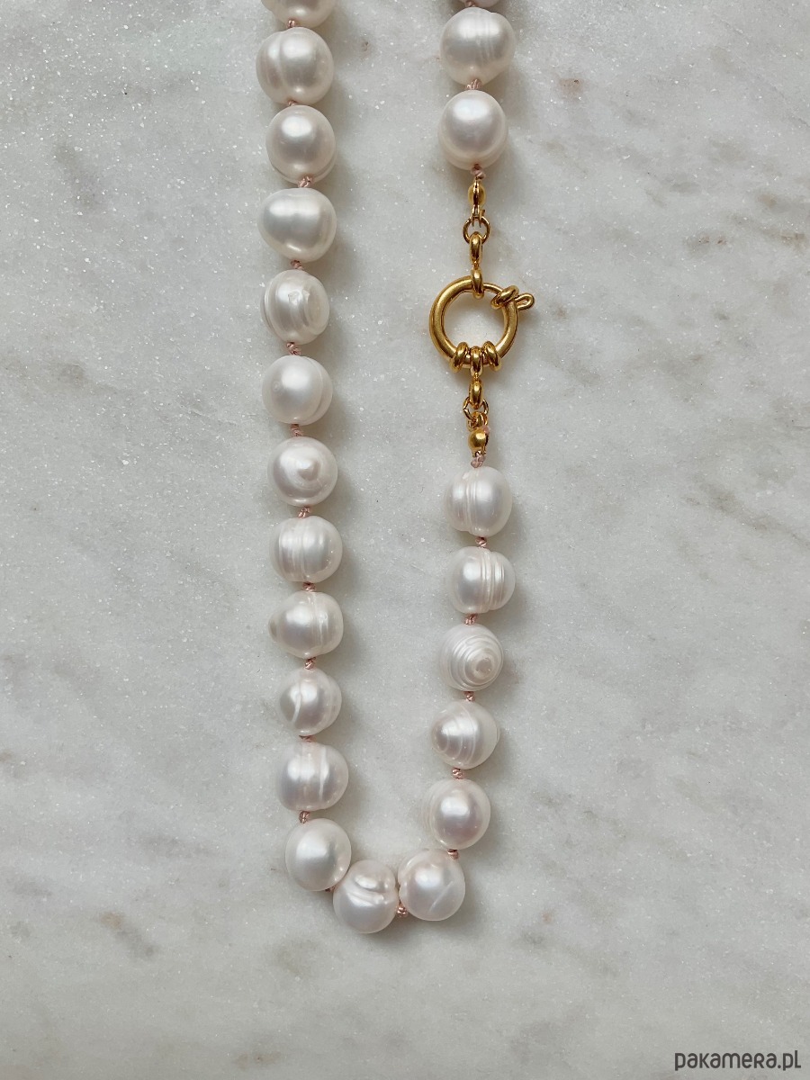 Naszyjnik z dużych pereł naturalnych na jedwabnej nici. Wielkość pereł 10-11mm.