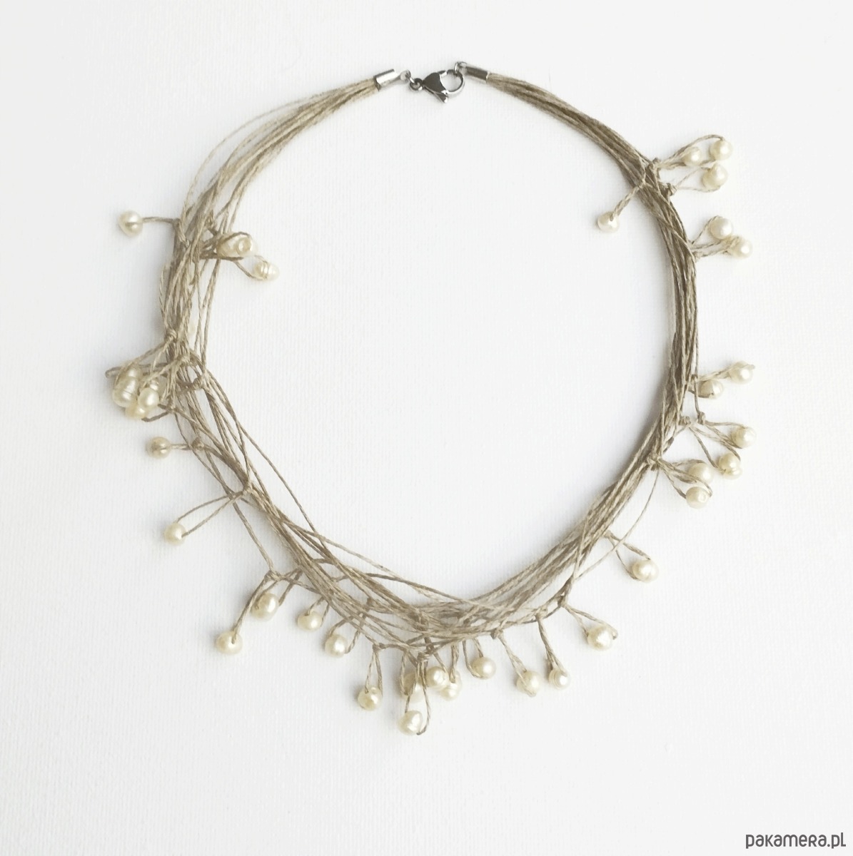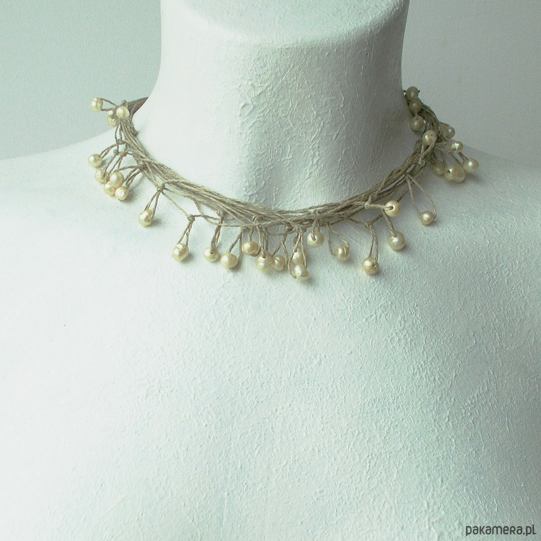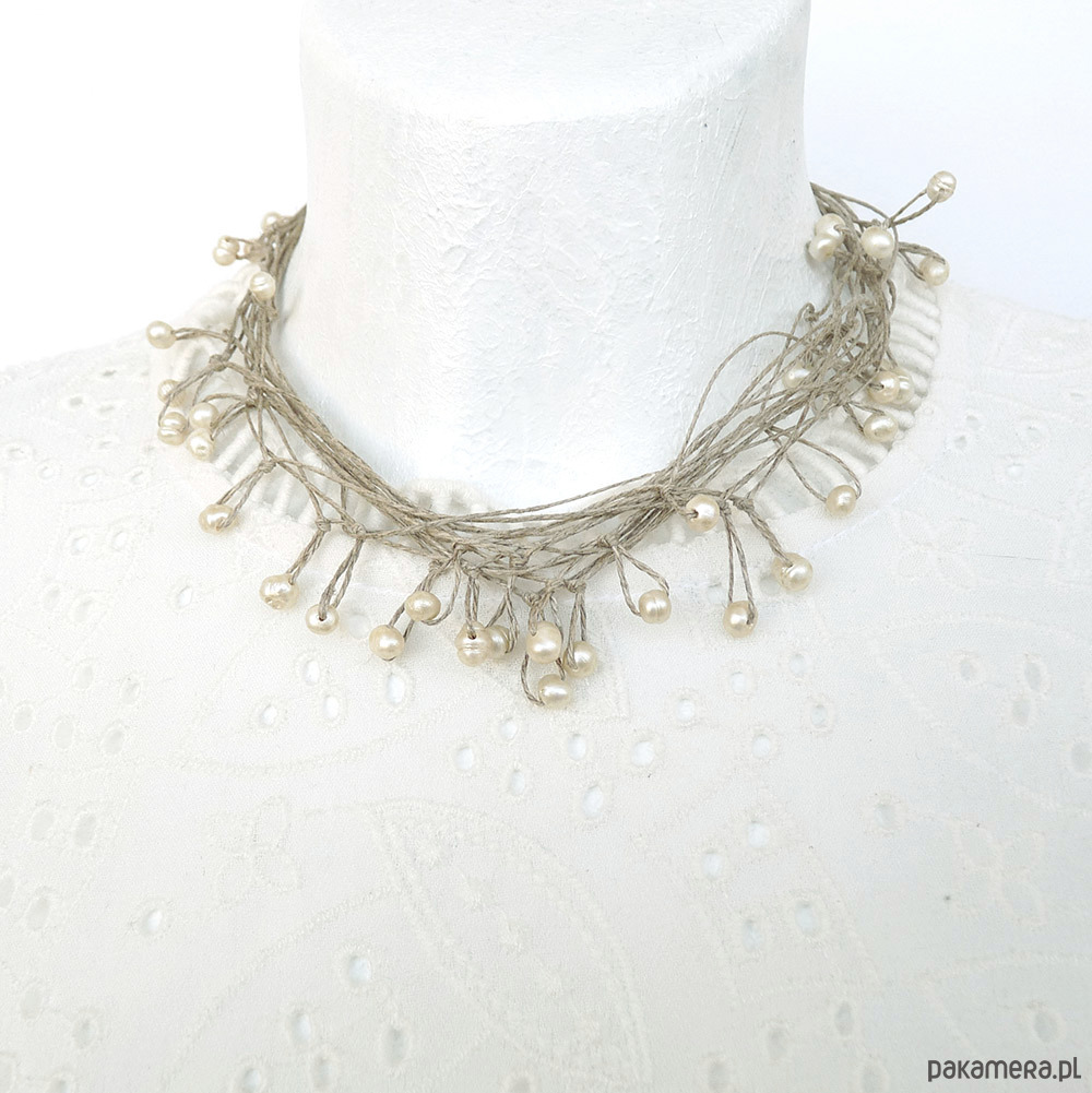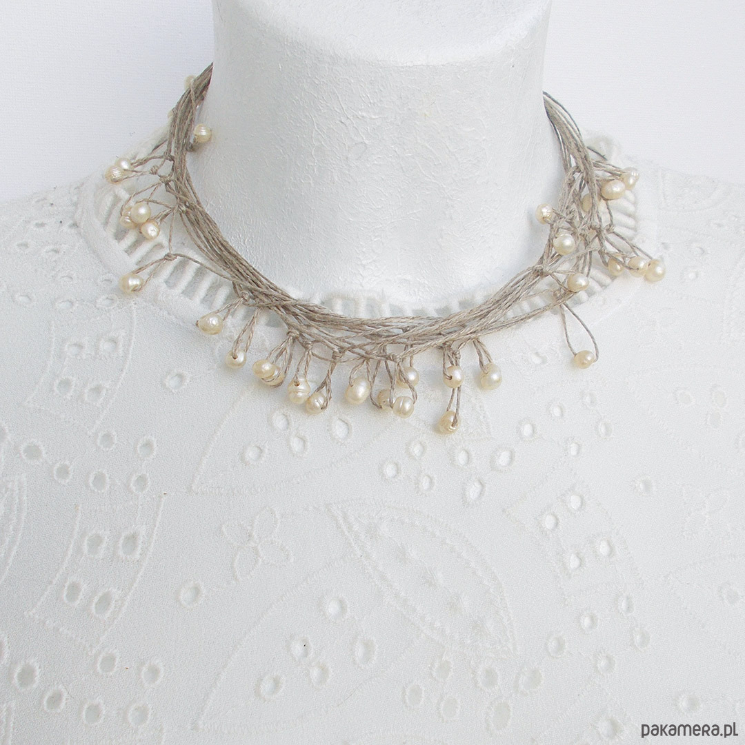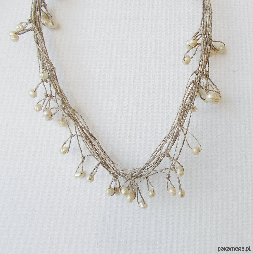 Oryginalny naszyjnik na bazie naturalnego lnu