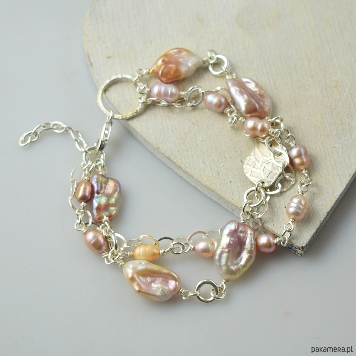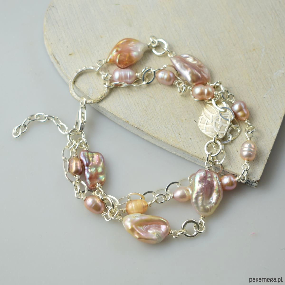 Perły w srebrze - bransoletka