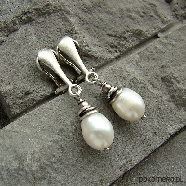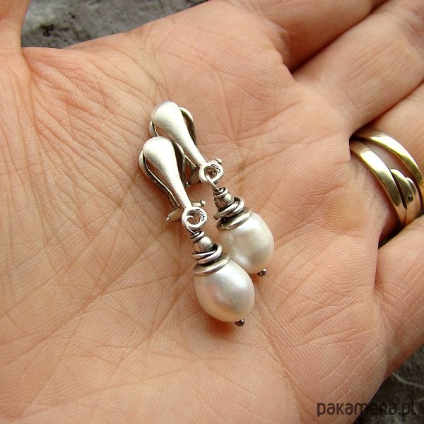 Proste, minimalistyczne klipsy na co dzień. Wykonane w całości z oksydowanego srebra próby 925 oraz naturalnych, białych pereł wielkości ok. 1 cm. Długość bez zapięć to 1,7 cm. Zapięcia rówież srebrne z wybitą próbą. Ozdobnie zapakowane.
