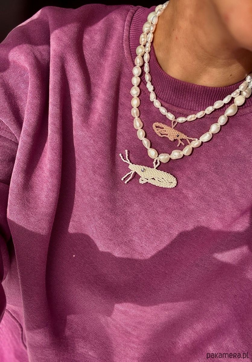 Perły z krewetką czyli naszyjnik choker z ręcznie uszytą langustą