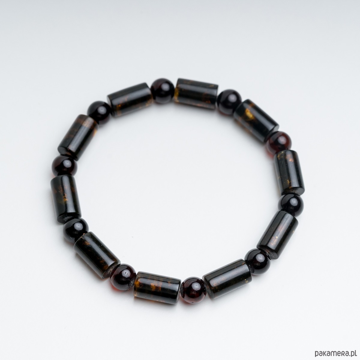 Bransoletka męska z czarnego/zielonego bursztynu bałtyckiego