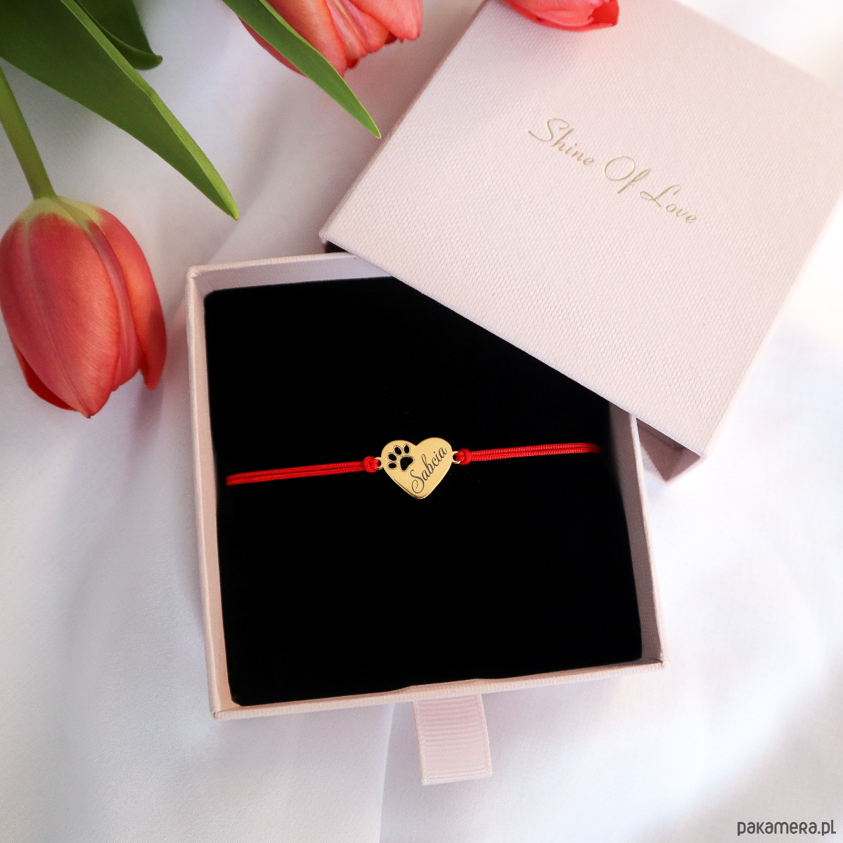 Piękna minimalistyczna bransoletka na sznurku z sercem i psią łapką oraz GRAWEREM!