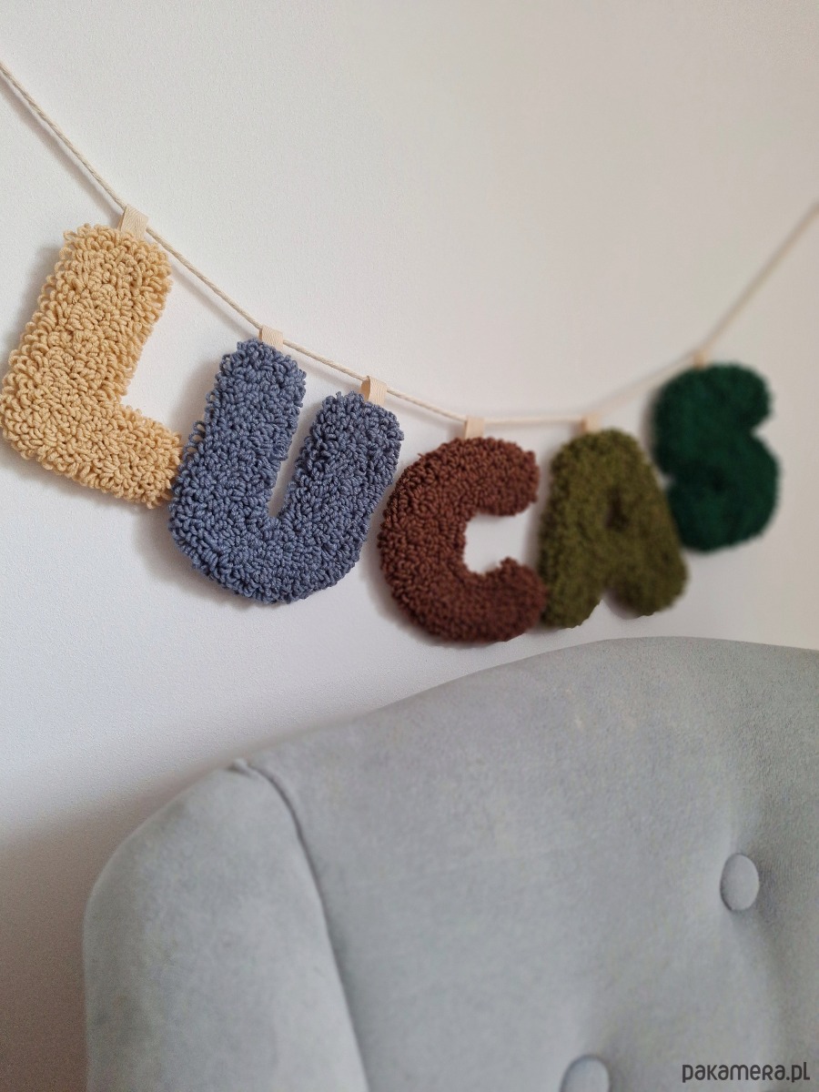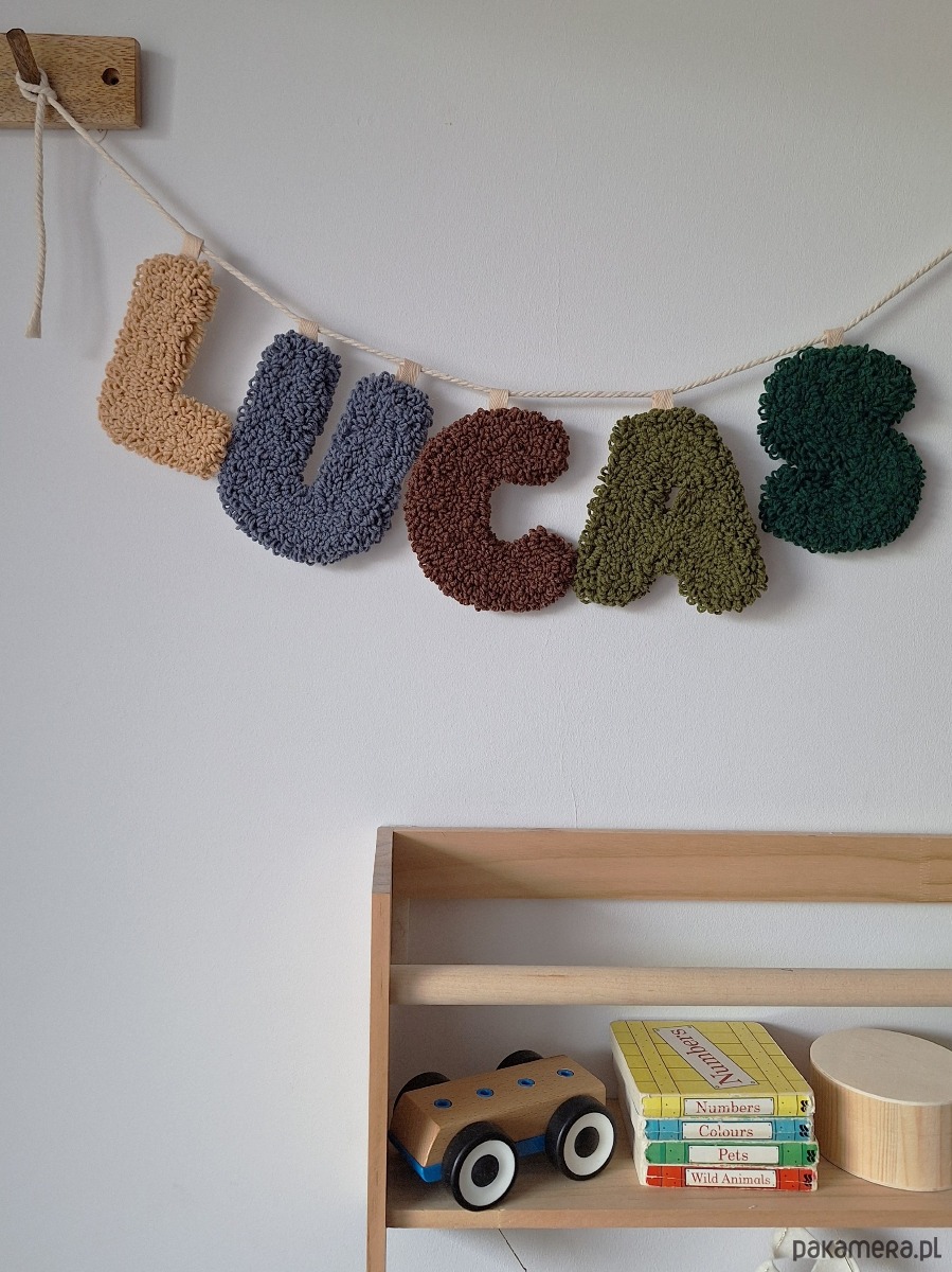 Subtelna, naturalna girlanda z imieniem to dekoracja, która wprowadza do dziecięcego wnętrza spokój, harmonię i osobisty charakter. Doskonale sprawdzi się w pokoju dziecka, kąciku niemowlęcym, nad łóżeczkiem lub półką z książkami. To detal, który domyka aranżację i tworzy ciepłą, wyciszoną atmosferę.