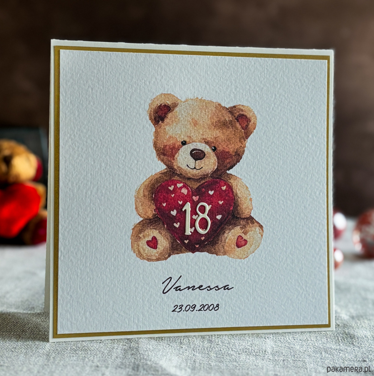 Elegancka, ręcznie wykonana, personalizowana kartka z okazji 18-tych urodzin. Produkt z naszej autorskiej kolekcji - BE HAPPY!