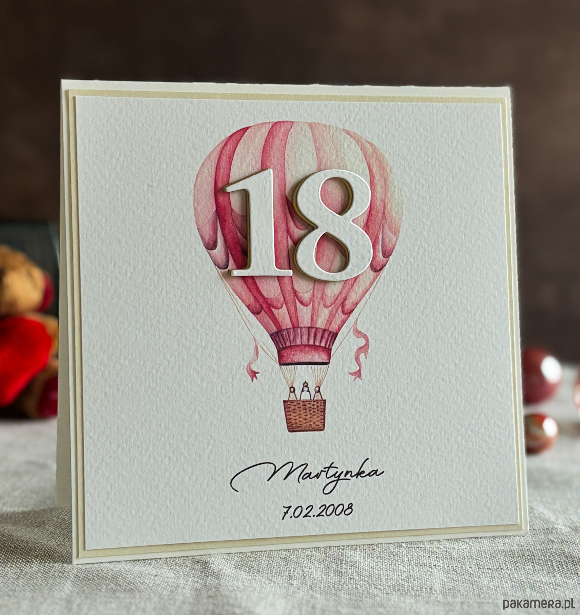 Elegancka, ręcznie wykonana, personalizowana kartka z okazji 18-tych urodzin. Produkt z naszej autorskiej kolekcji - BE HAPPY!