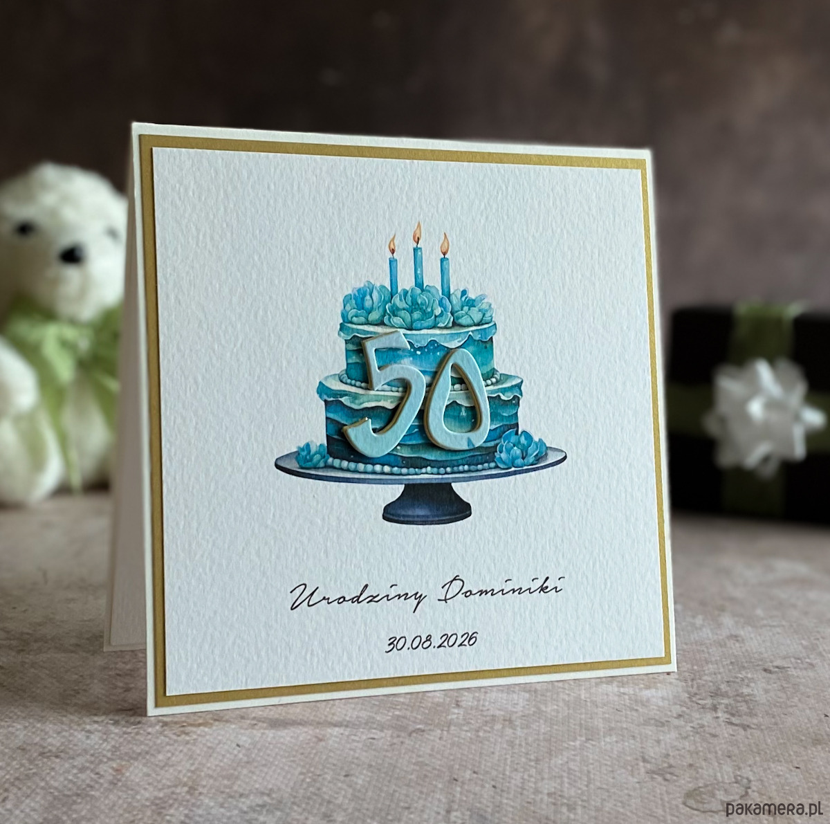 Elegancka, ręcznie wykonana, personalizowana kartka z okazji 50-tych urodzin. Pozycja z naszej autorskiej kolekcji - BE HAPPY!