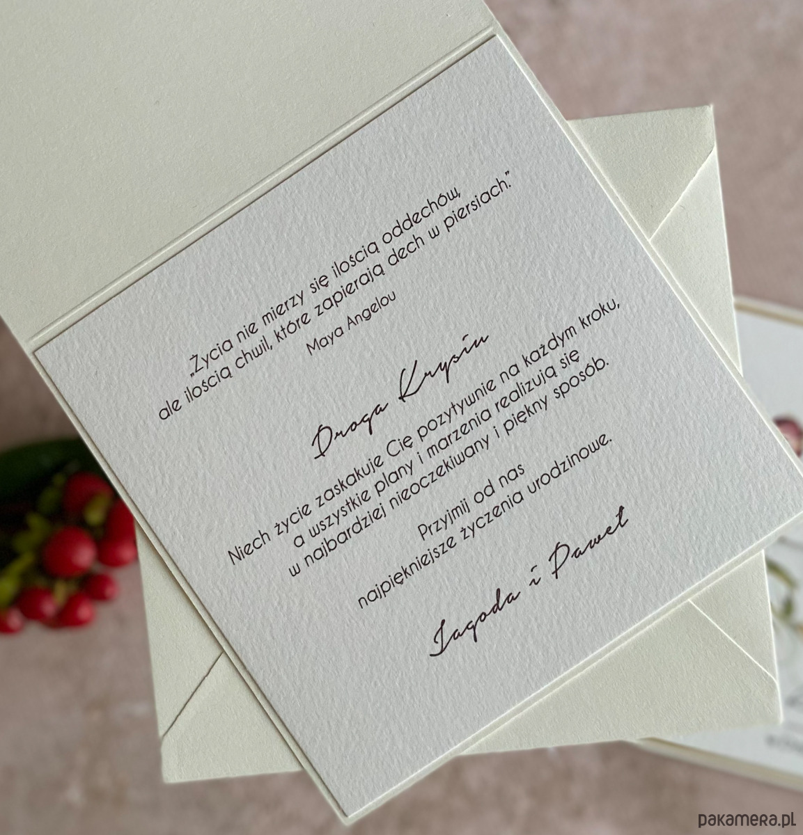 Cena obejmuje kartkę wraz z kopertą w kolorze ecru.