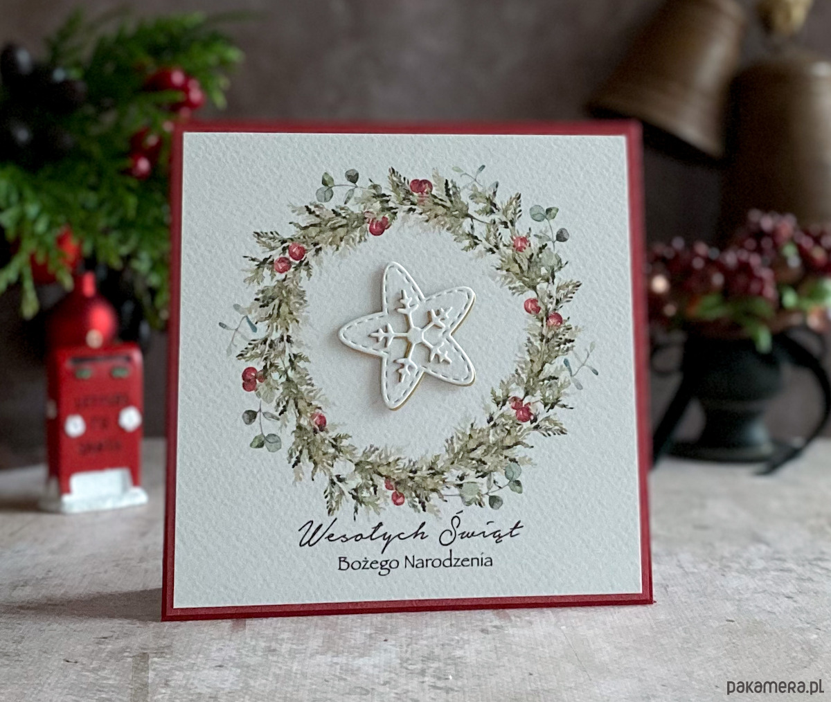 Elegancka i szykowna, ręcznie robiona, personalizowana kartka na Boże Narodzenie.