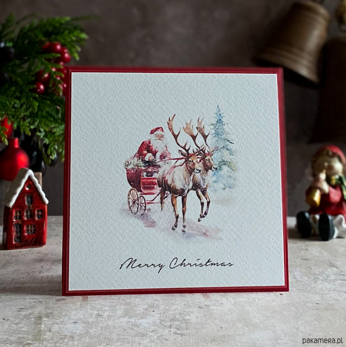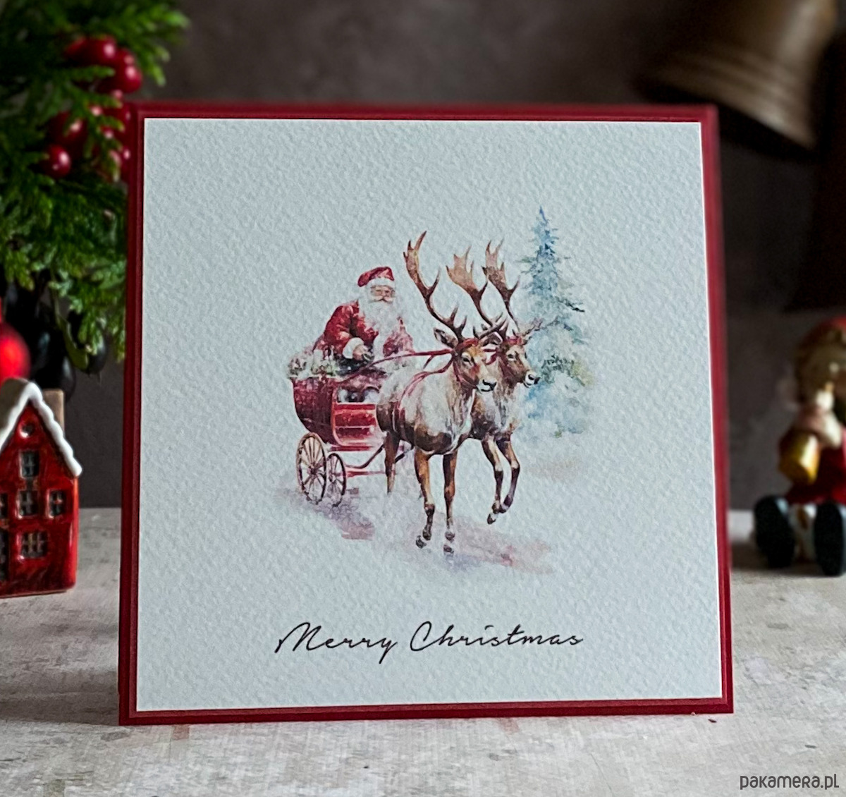 Elegancka i szykowna, ręcznie robiona, personalizowana kartka na Boże Narodzenie.