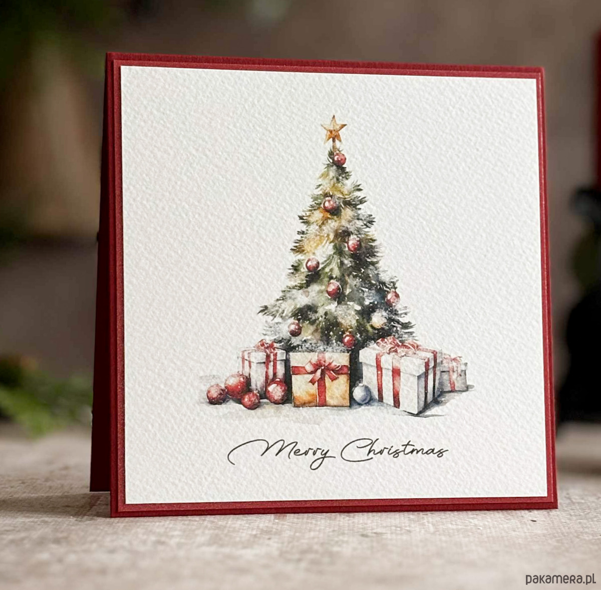 Elegancka i szykowna, ręcznie robiona, personalizowana kartka na Boże Narodzenie.