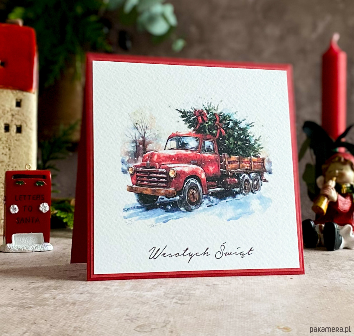 Elegancka i szykowna, ręcznie robiona, personalizowana kartka na Boże Narodzenie.