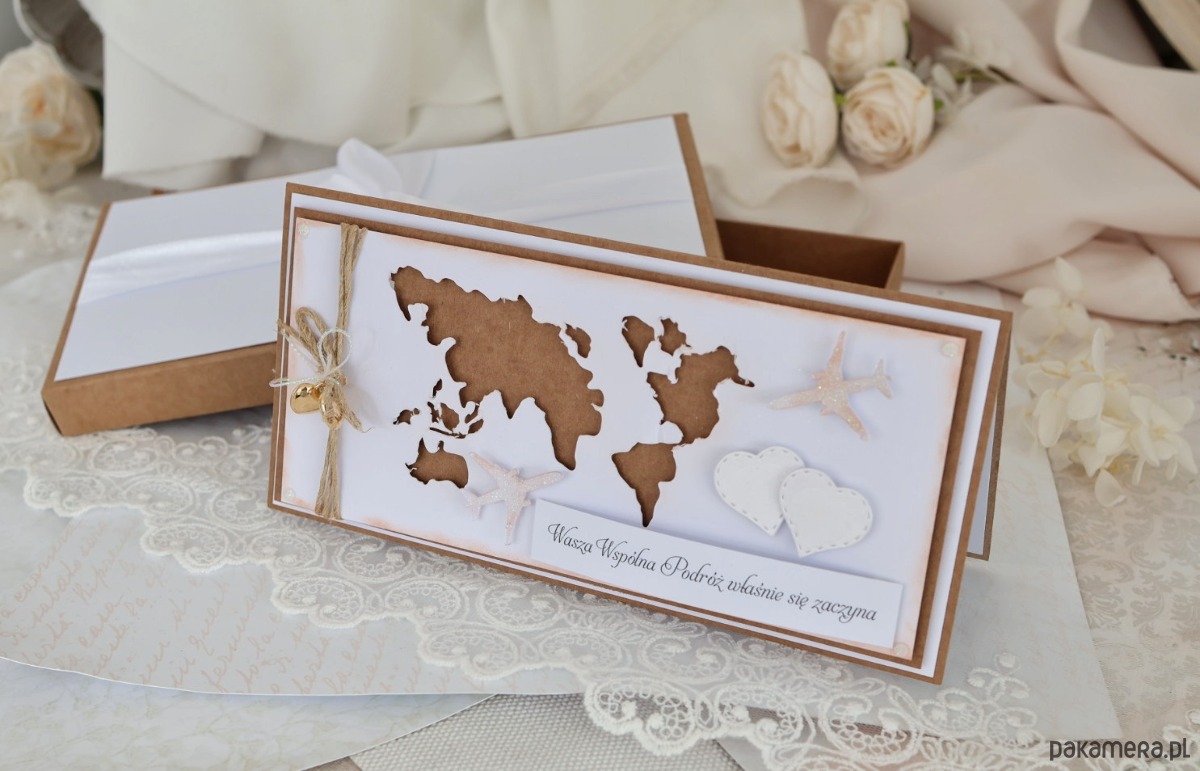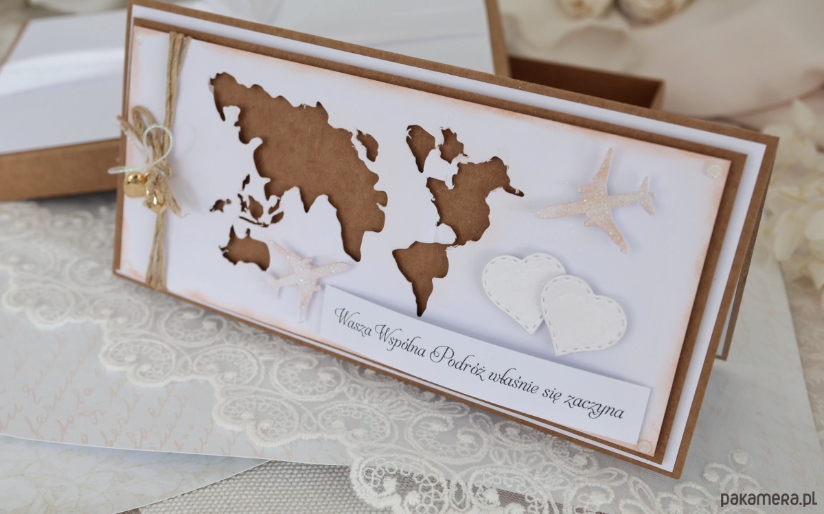 Personalizowana kartka ślubna dla pary podróżników, kartka na ślub eko